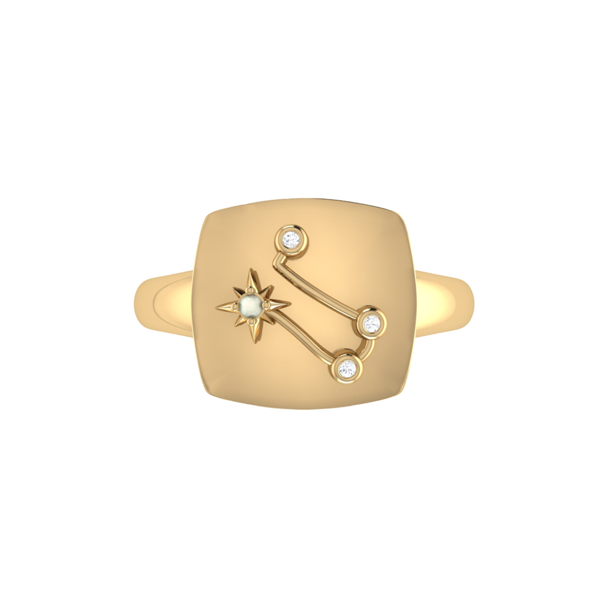Gemini Twin Moonstone & Diamond Constellation Signet Ring in 14K Yellow Gold Vermeil on Sterling Silver