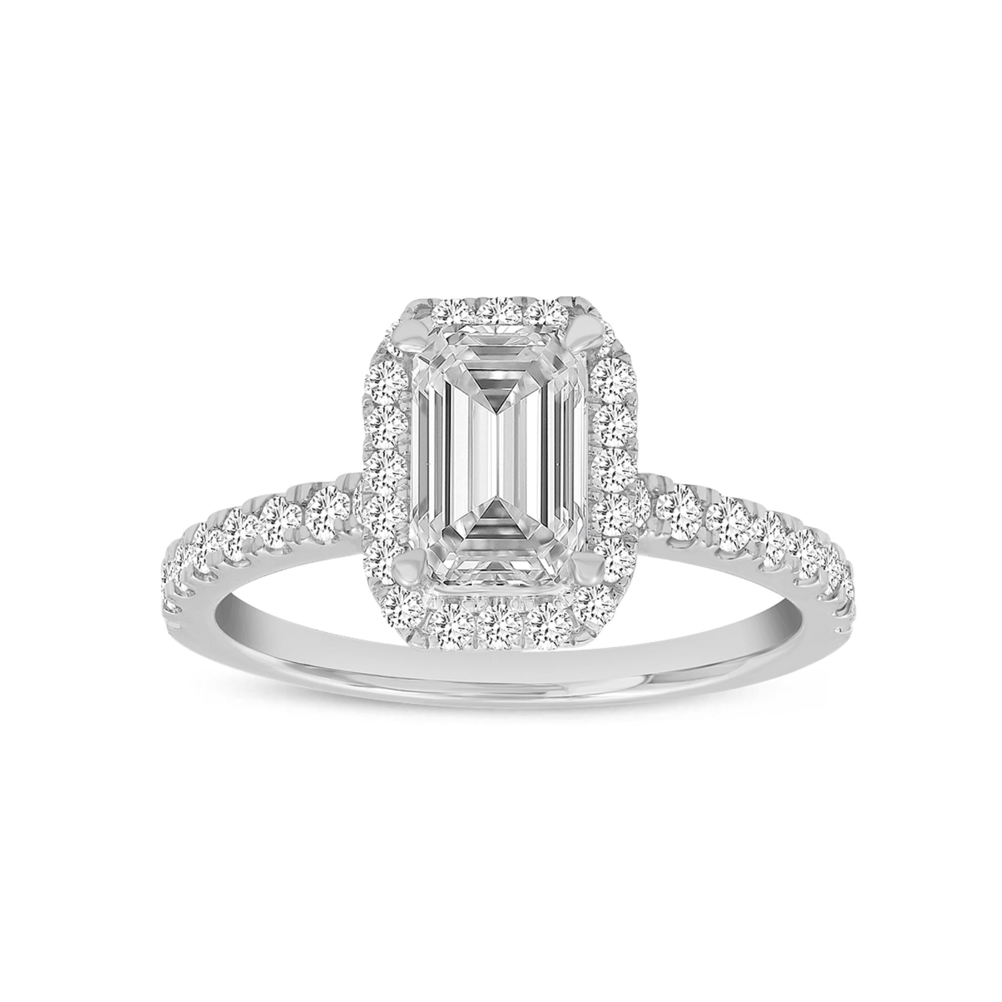 Ivey 14K White Gold Emerald Cut Lab Grown Diamond Halo Engagement Ring - 1.75 ctw