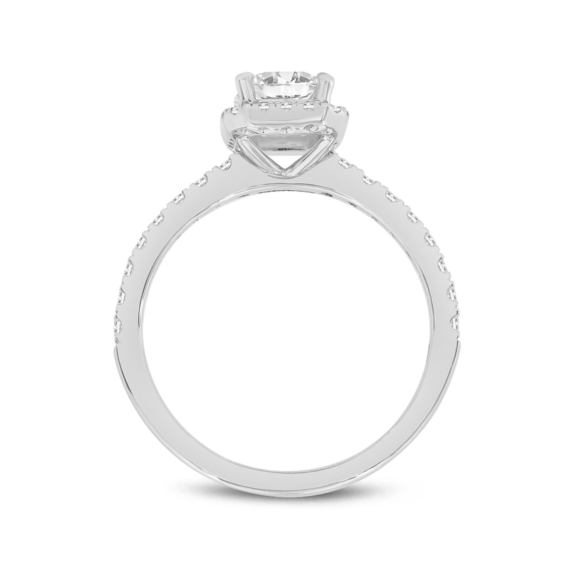 LuvMyJewelry's iconic halo ring features a 1.75 ct. emerald cut center lab grown diamond and round cut lab grown side diamonds set in 14K gold with a four prong setting. The ring is accompanied with an IGI certificate with the certificate number inscribed within the band. Diamond carat weight may fluctuate 0.05 carats ABOVE the stated number.