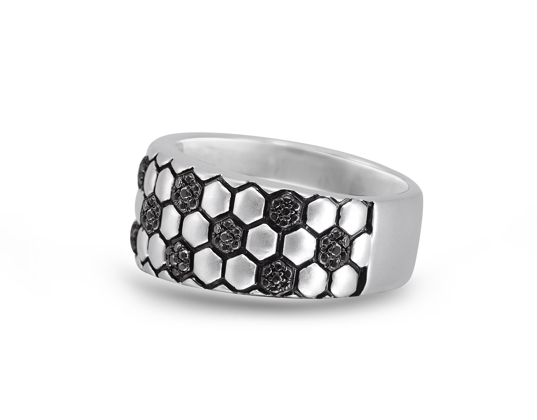 Our Soccer Football Silver & Black Diamond Band Men Ring features a sleek and athletic design. Crafted for the man who values style and a tribute to his love for soccer.