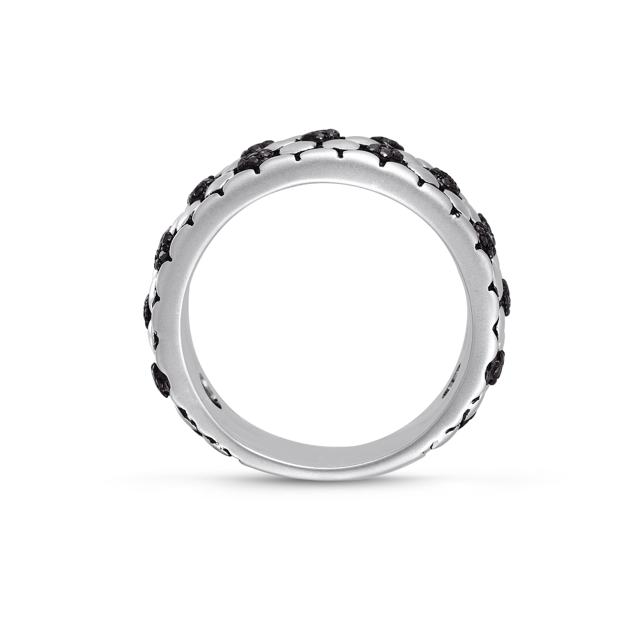 Kick & Goal Soccer Black Rhodium Plated Sterling Silver Black Diamond Band Ring