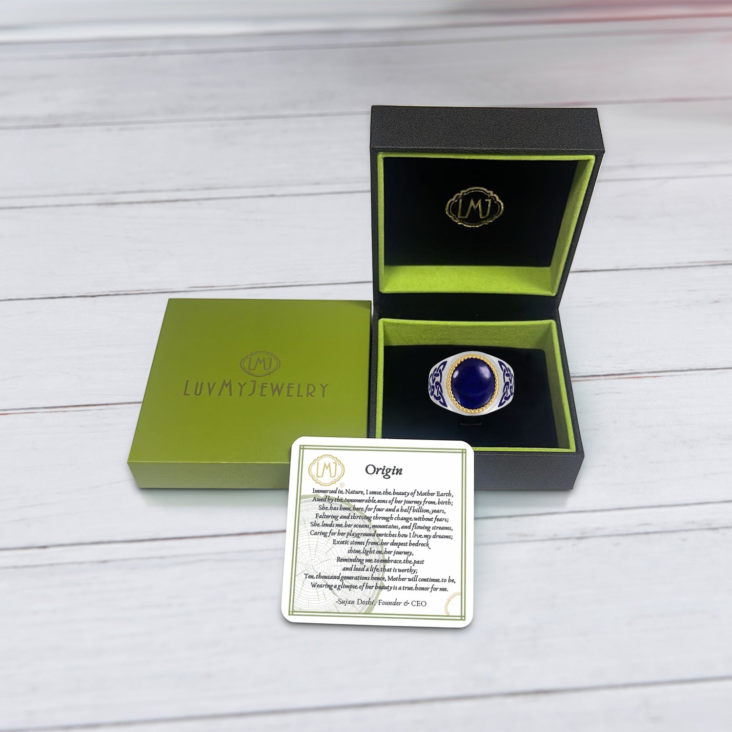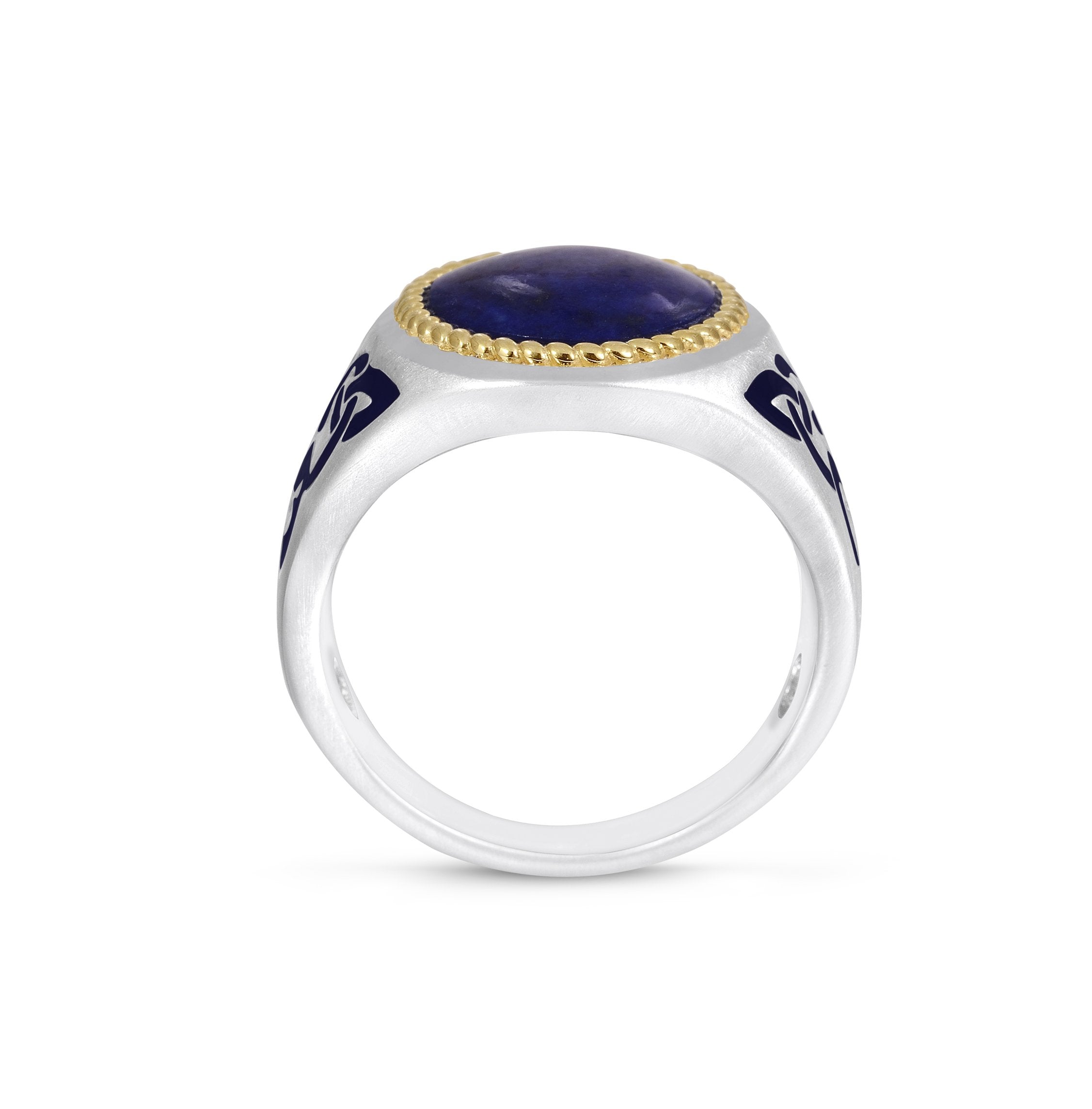Lapis Lazuli Stone Signet Ring in Sterling Silver with Enamel