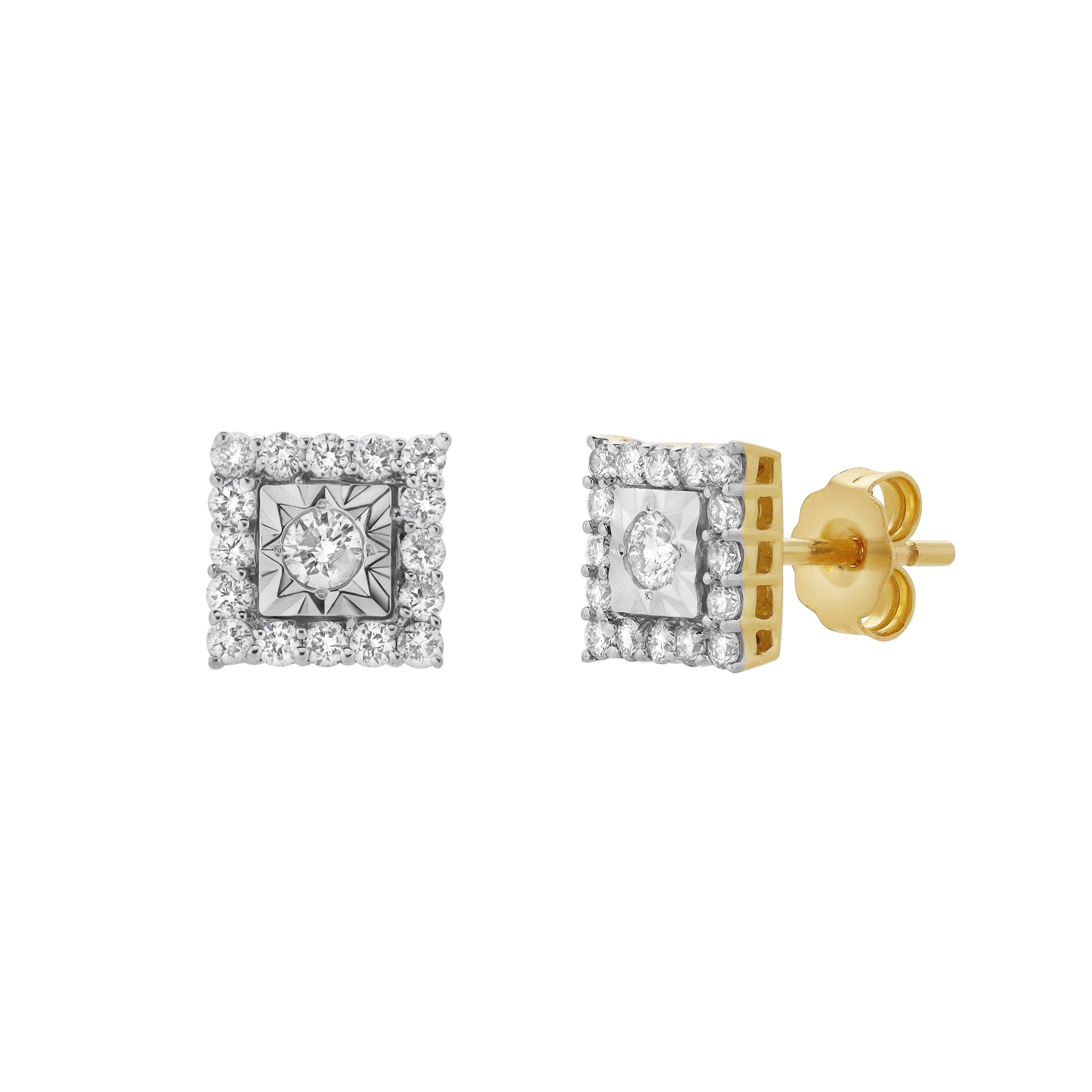 These gorgeous 0.34 carat diamond earrings feature a elegant cluster design meticulously set in 10K gold with a screwback setting. Their elegant arrangement highlights the timeless brilliance of the diamonds.