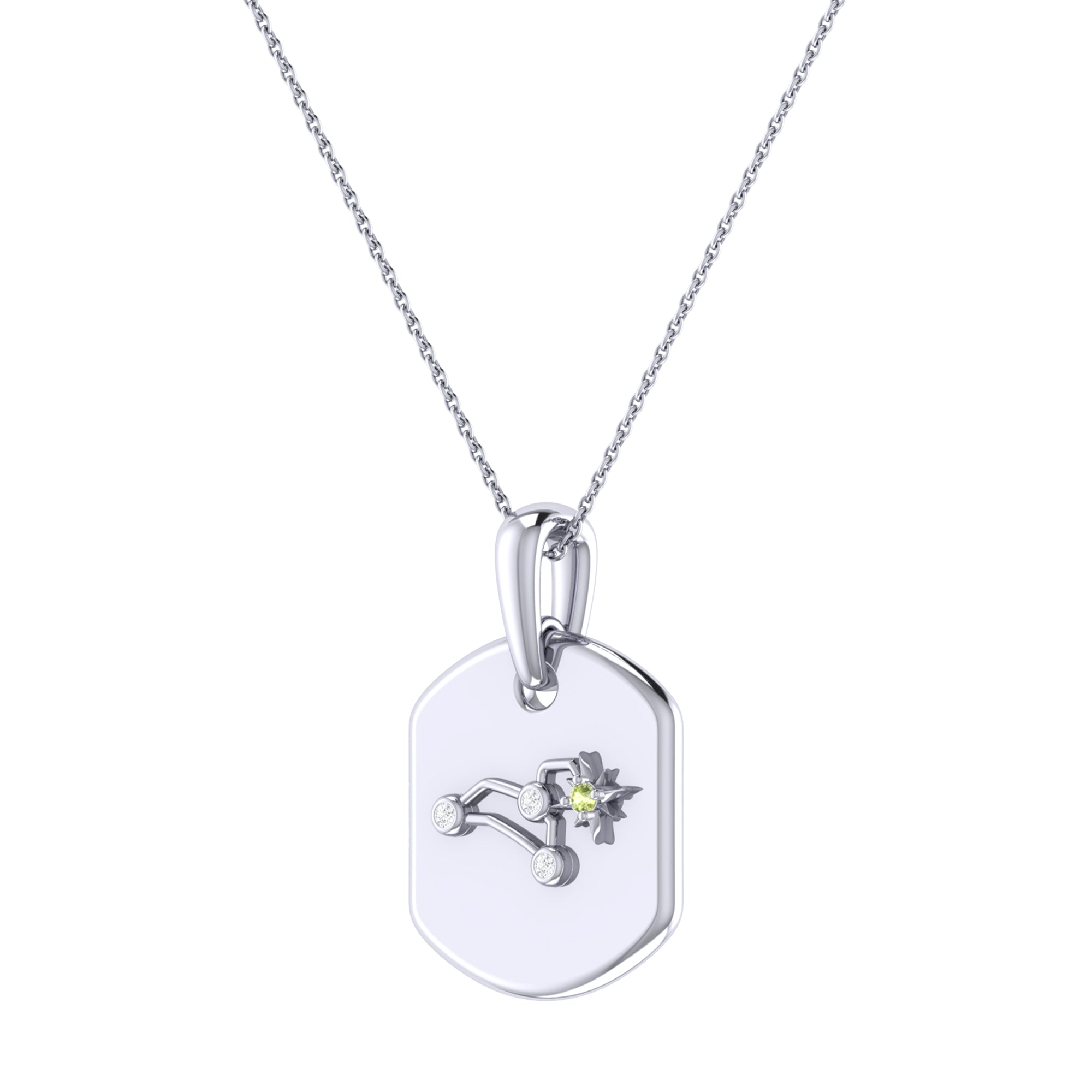 Leo Lion Peridot & Diamond Constellation Tag Pendant Necklace in Sterling Silver