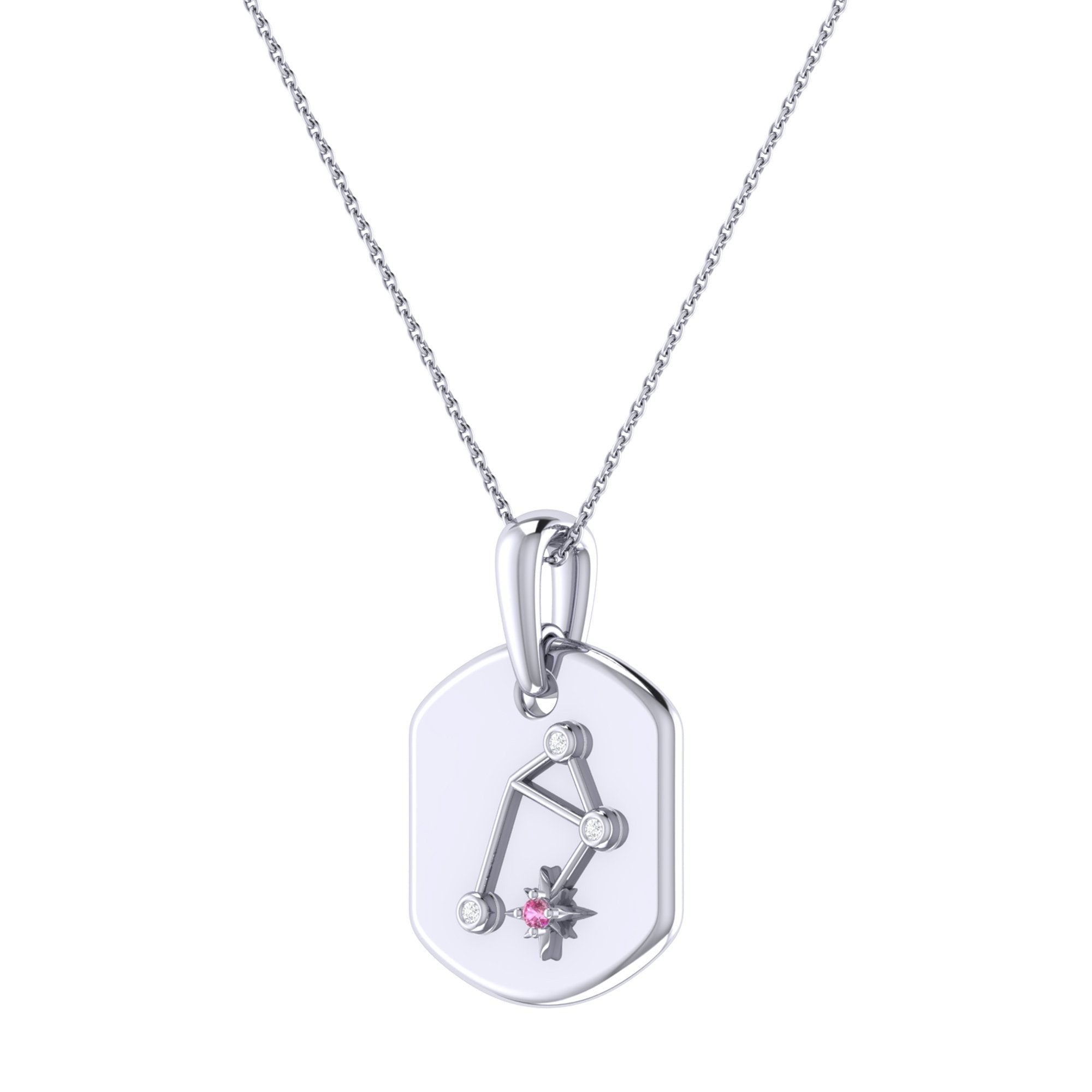 Libra Scales Pink Tourmaline & Diamond Constellation Tag Pendant Necklace in 14K White Gold