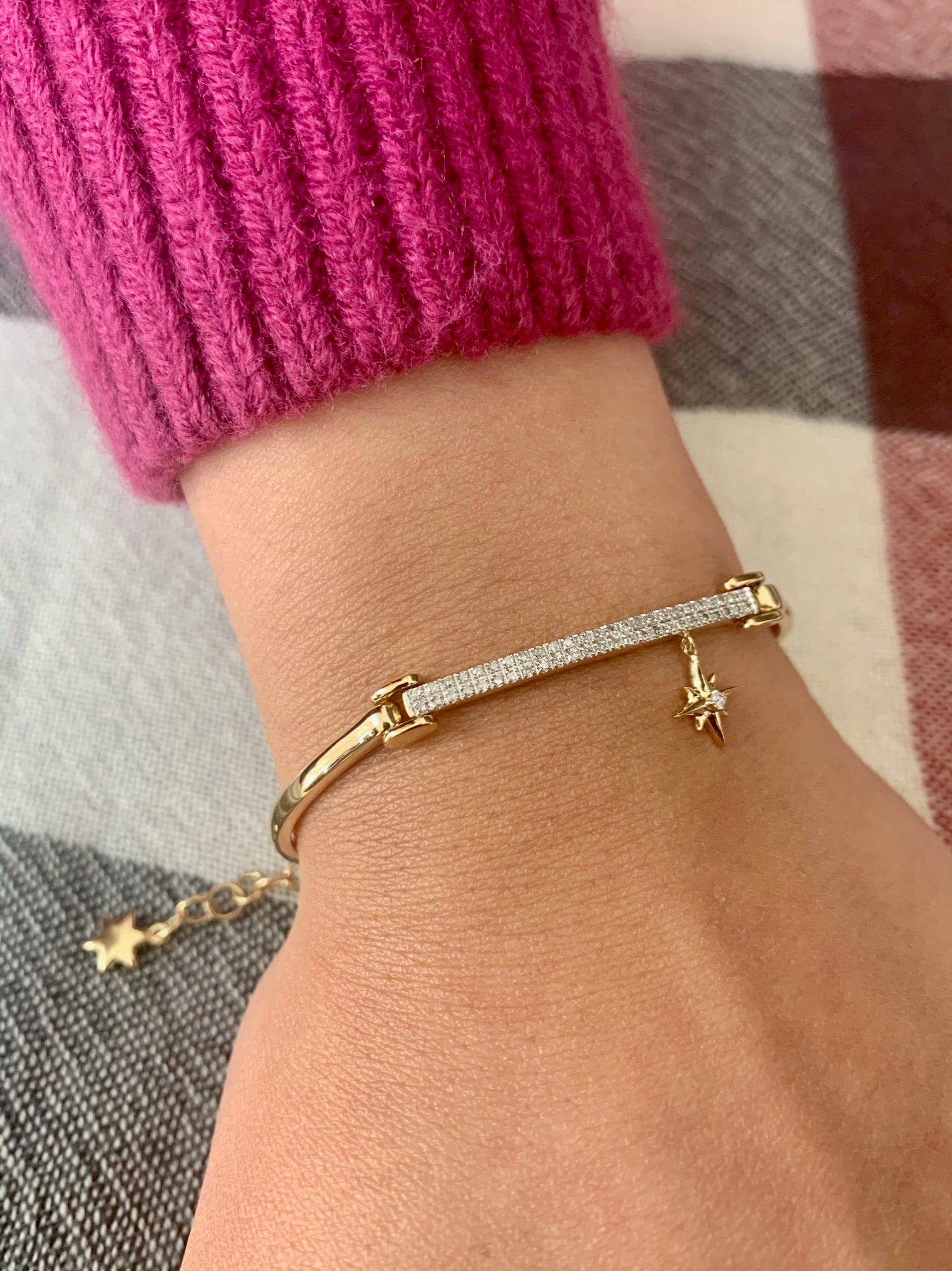 Let the North Star guide your style when you wear the Little North Star Sterling Silver Diamond Bar Bangle. Expertly handcrafted with timeless beauty and grace.