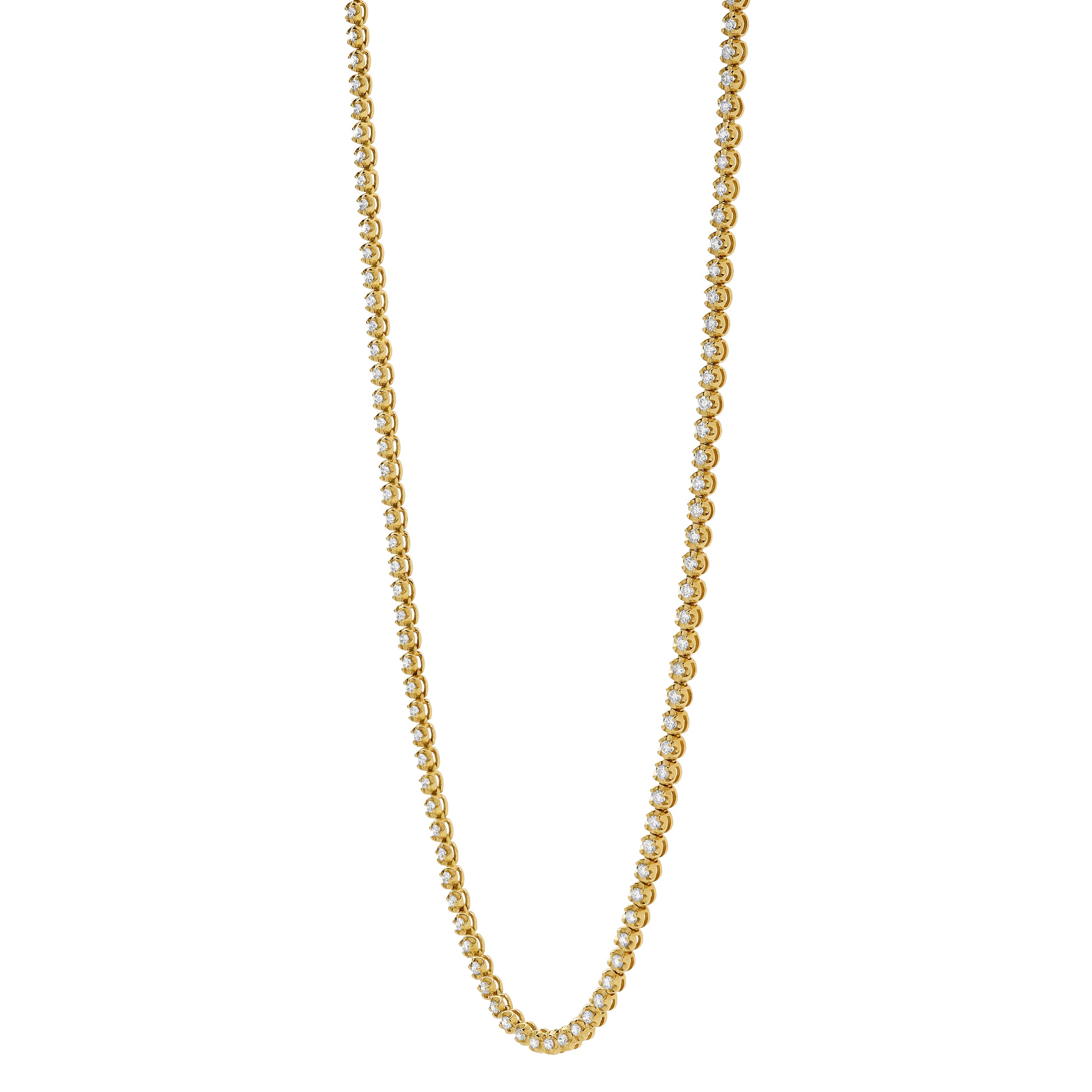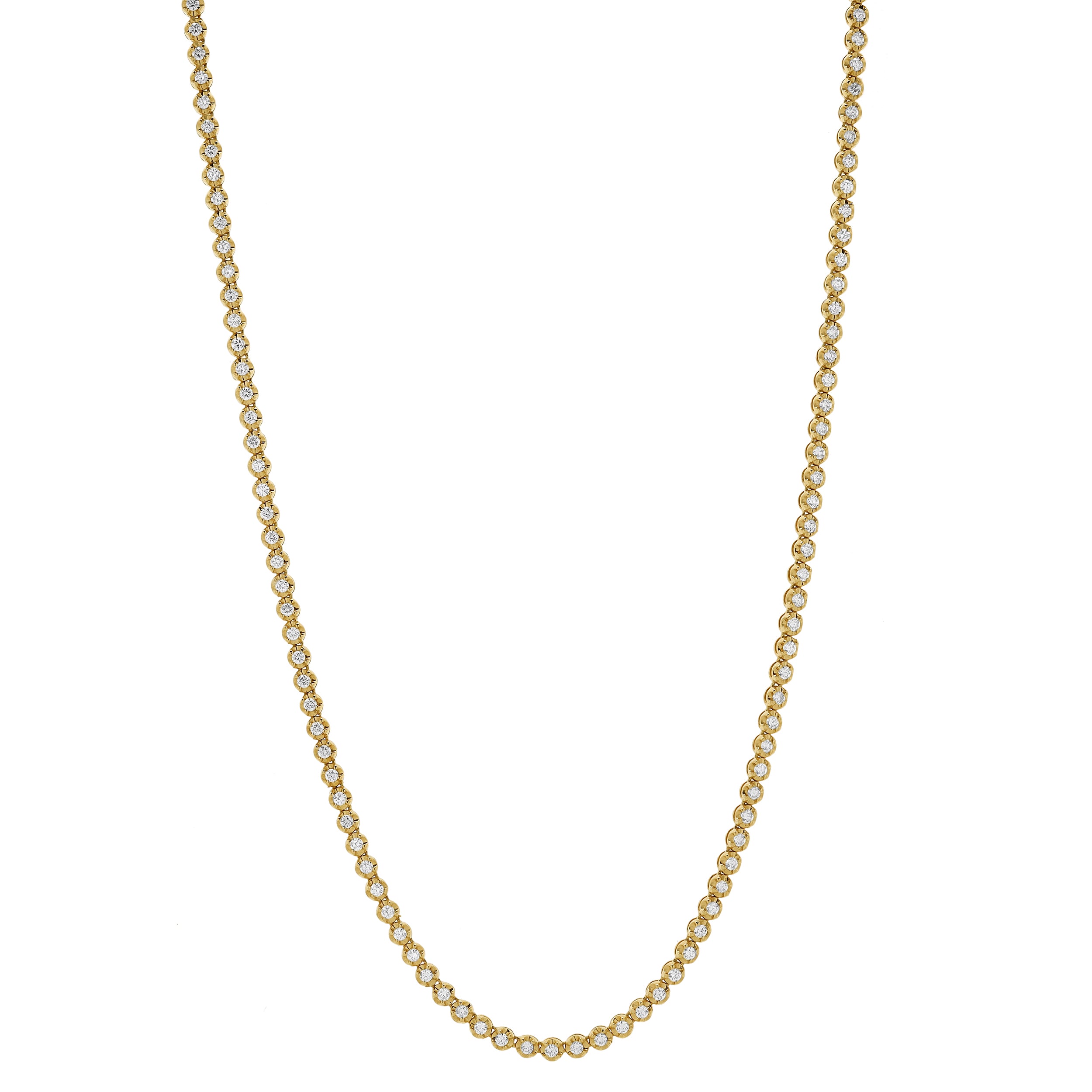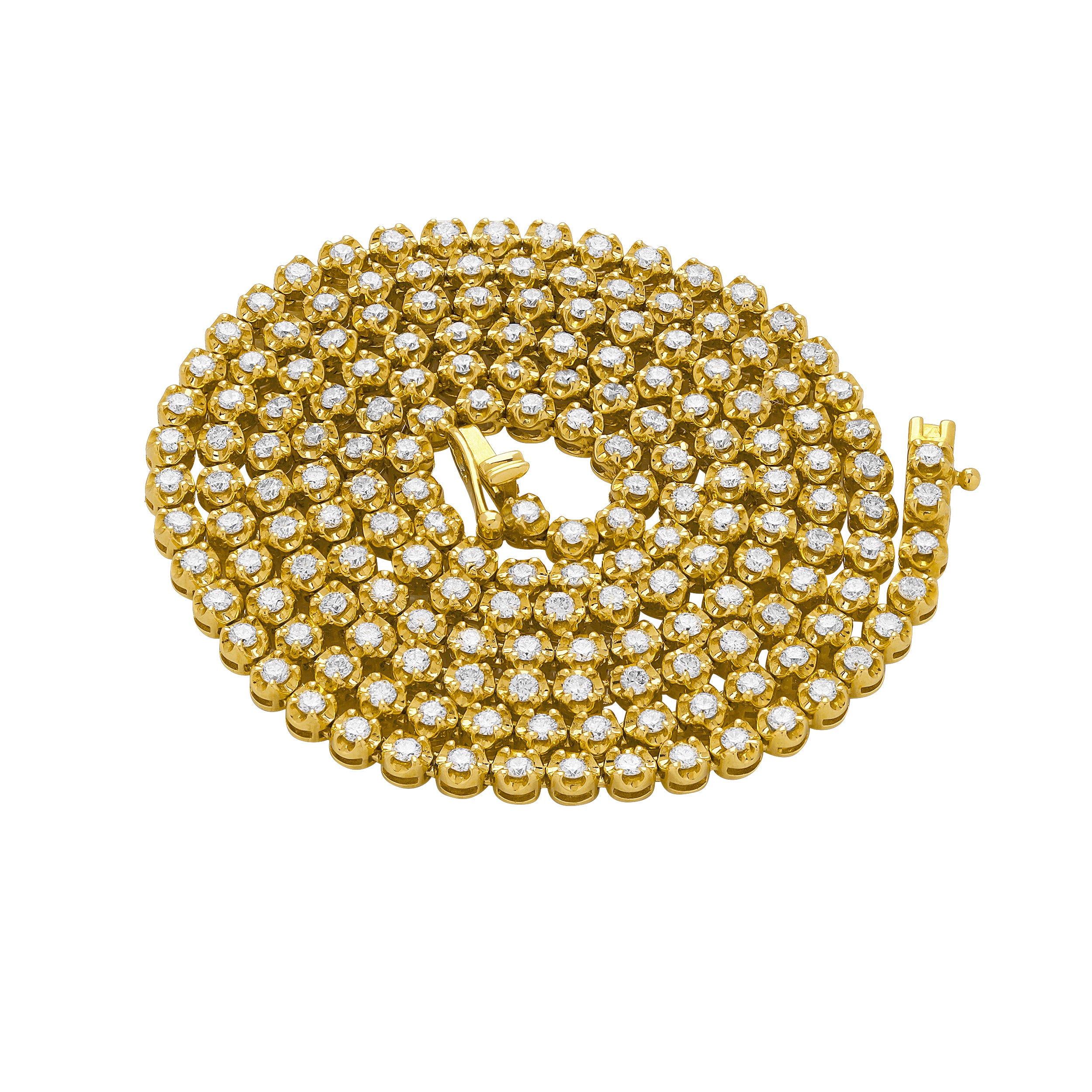 Crafted in 14K Yellow Gold this elegant 22 inch tennis chain showcases 4 carats of IJ VS2 diamonds in a buttercup setting radiating timeless brilliance. Stated carat weights may fluctuate by 0.05 carats.