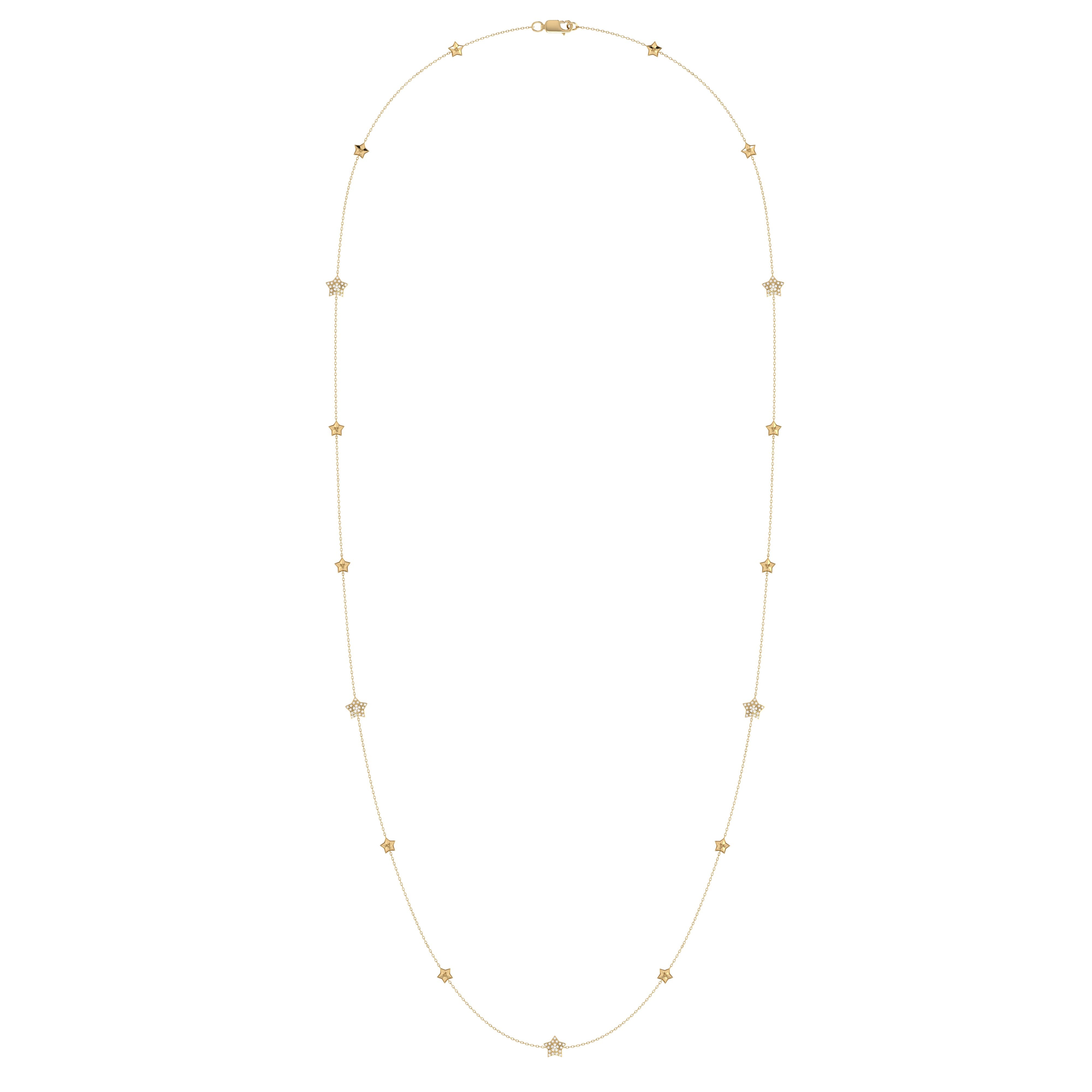 These dainty stars are sure to up any style in the most dreamy way. Crafted in 14K Yellow Gold, this necklace features 100% natural, genuine diamonds. 0.27 carats of diamonds are used in an individual plate prong setting. This necklace is 30" long and uses a cable chain with lobster clasp.