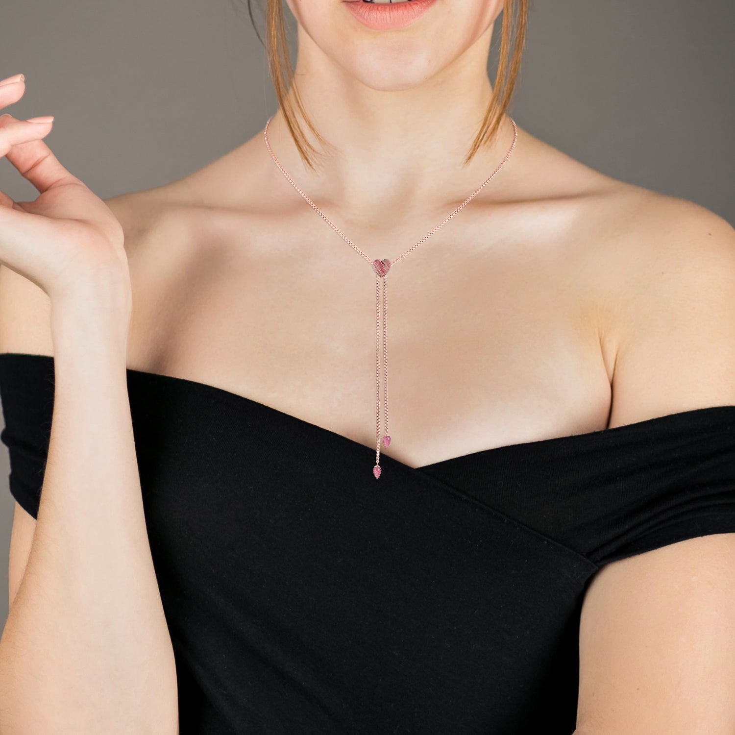 Luv Me Rhodochrosite Adjustable Heart Necklace in 14K Rose Gold Plated Sterling Silver