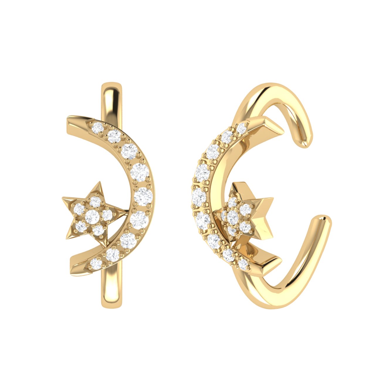 Moonlit Star Diamond Ear Cuffs in 14K Yellow Gold Vermeil on Sterling Silver