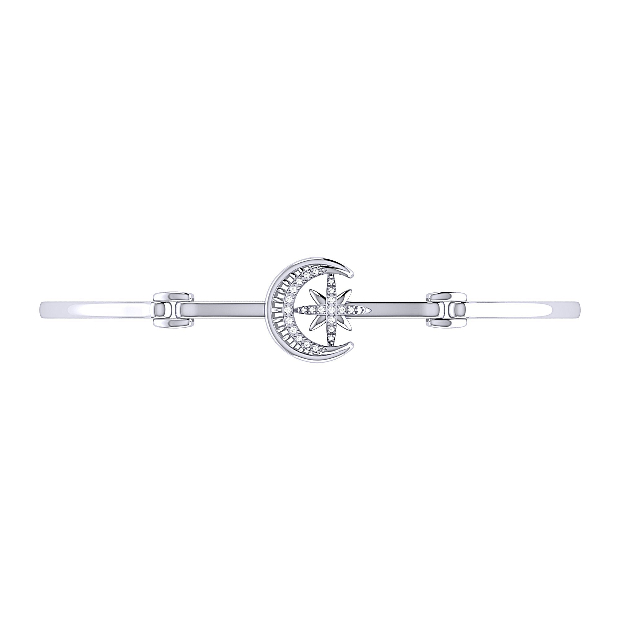 Nighttime Lovers Crescent Diamond Bangle in Sterling Silver