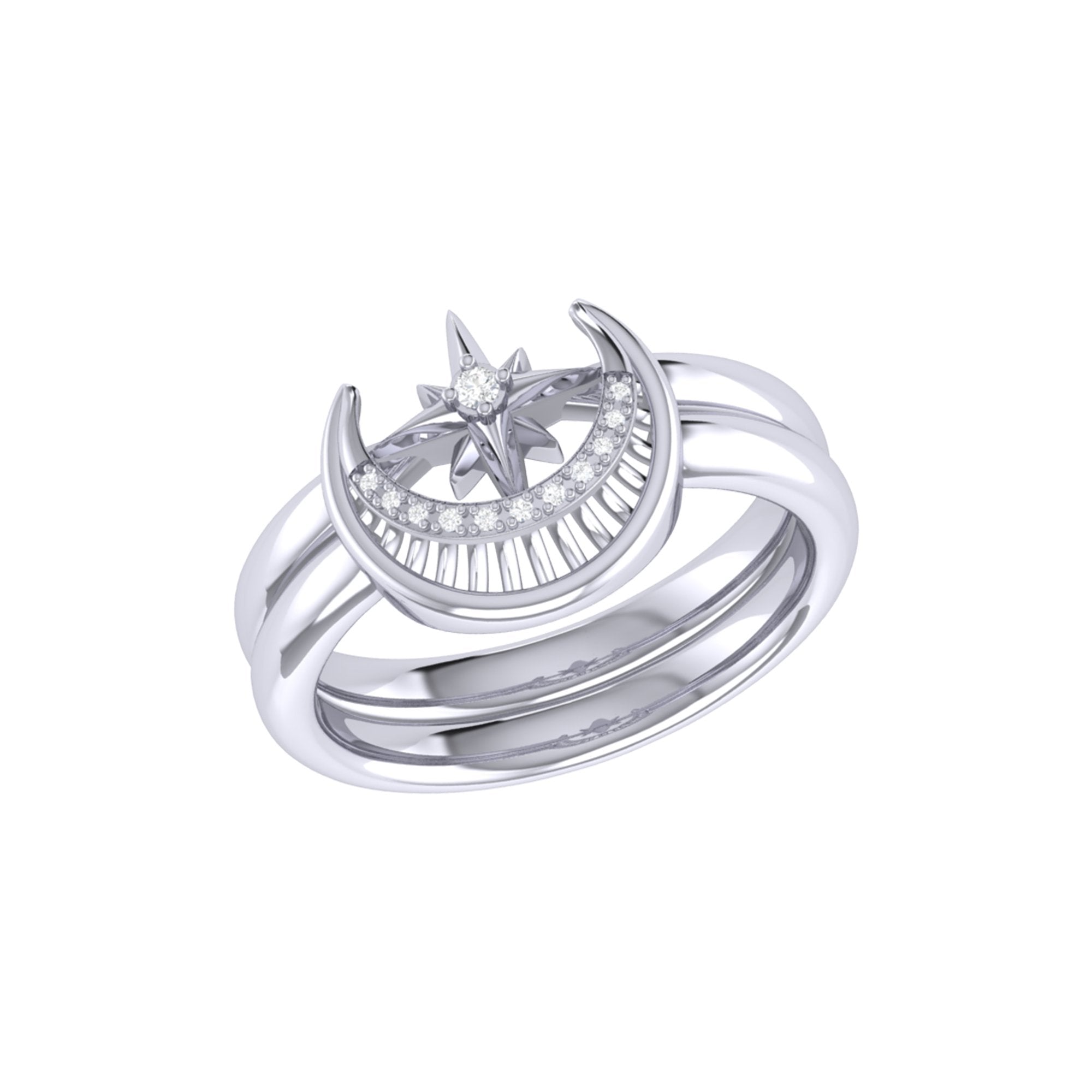 Nighttime Moon Star Lovers Detachable Diamond Ring in 14K White Gold