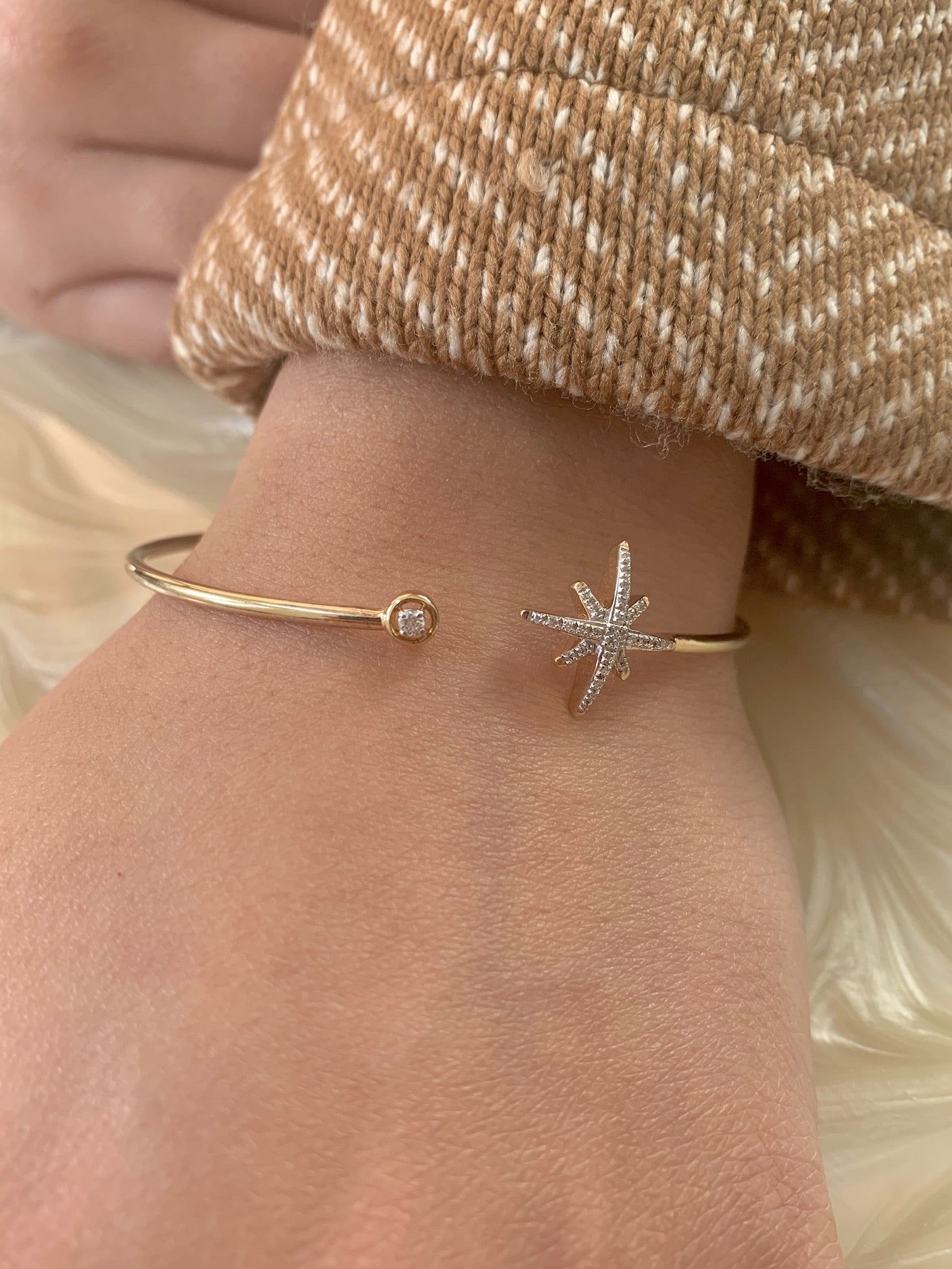 North Star Adjustable Diamond Cuff in 14K Yellow Gold Vermeil on Sterling Silver