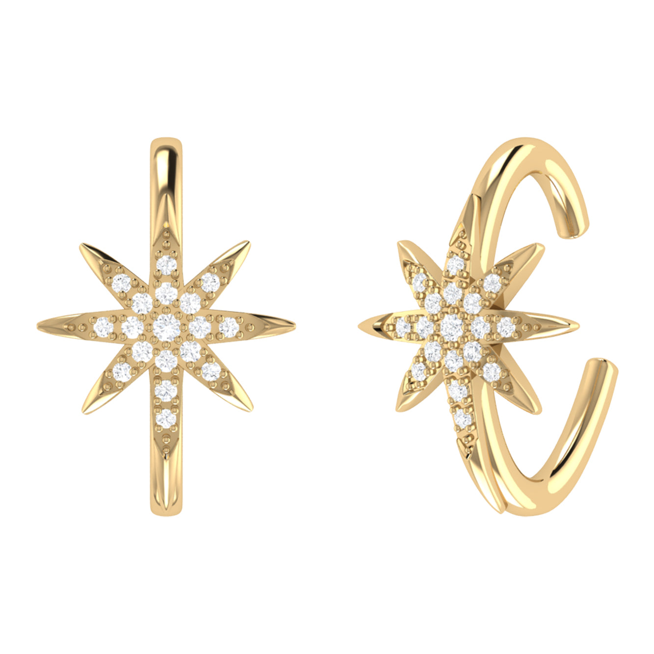 North Star Diamond Ear Cuffs in 14K Yellow Gold Vermeil on Sterling Silver