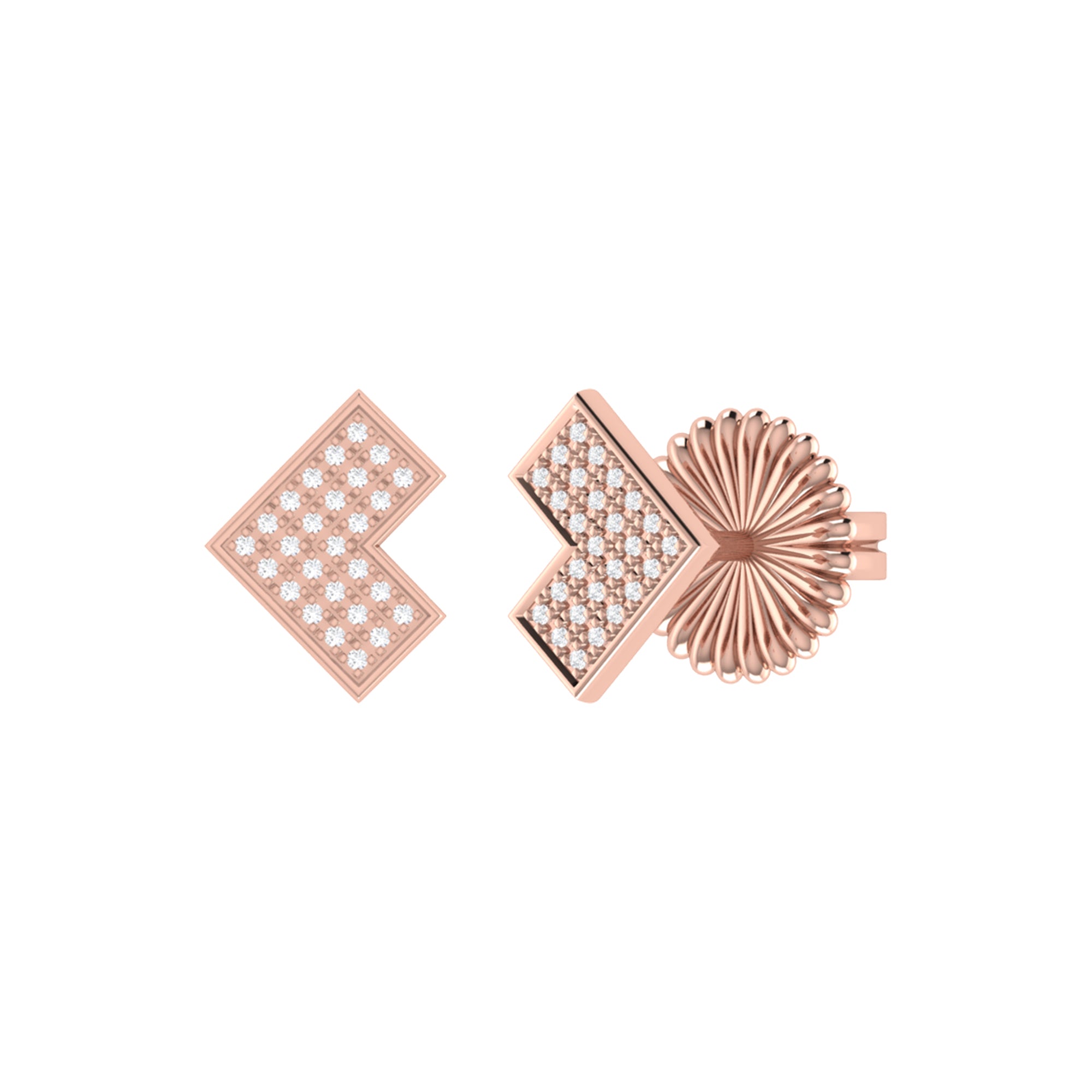 One Way Arrow Diamond Stud Earrings in 14K Rose Gold Vermeil on Sterling Silver