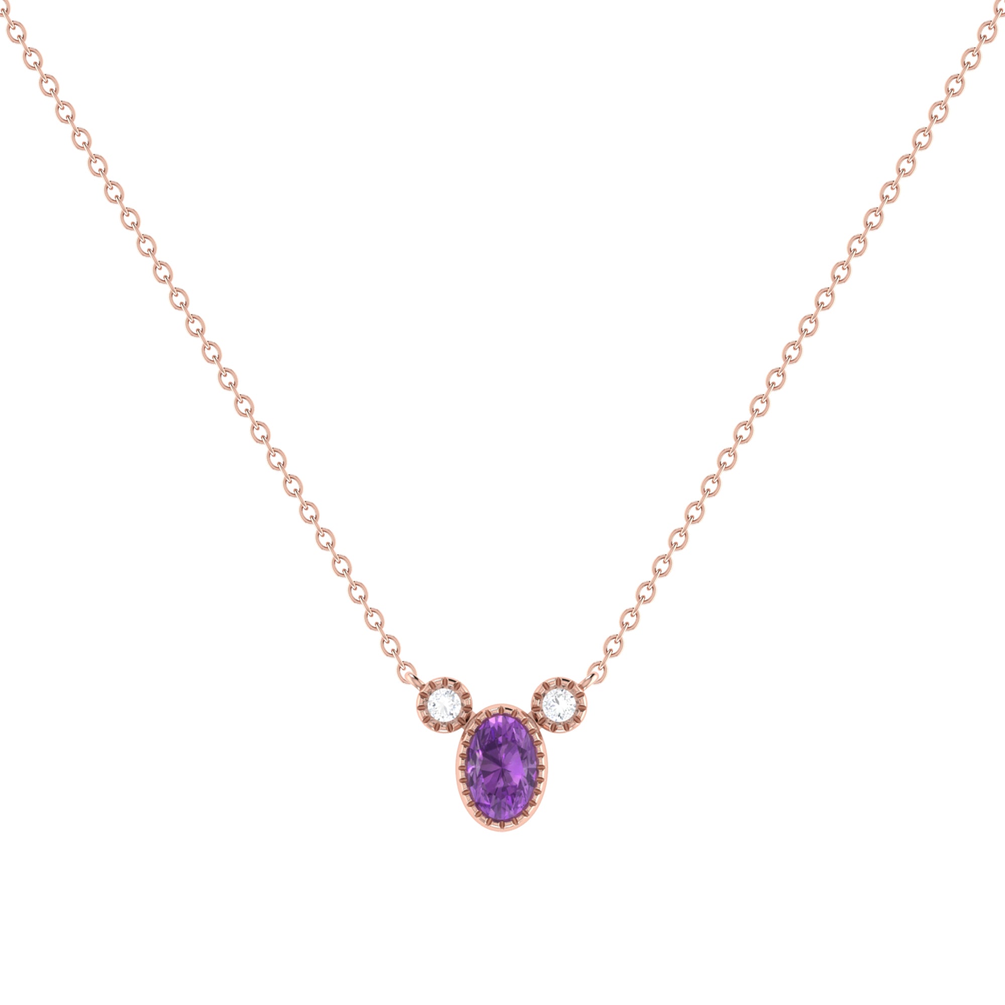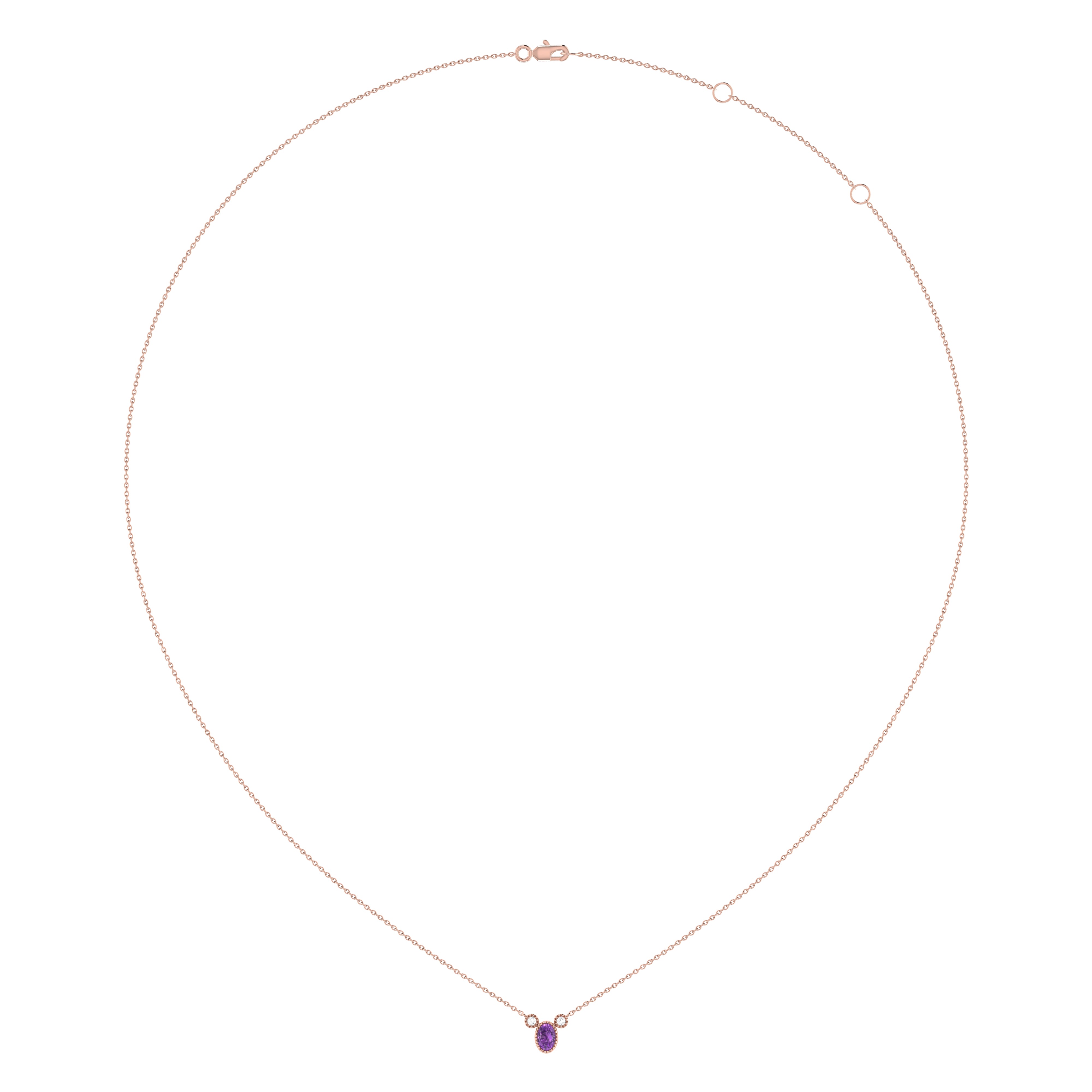Oval Cut Amethyst & Diamond Birthstone Necklace In 14K Rose Gold