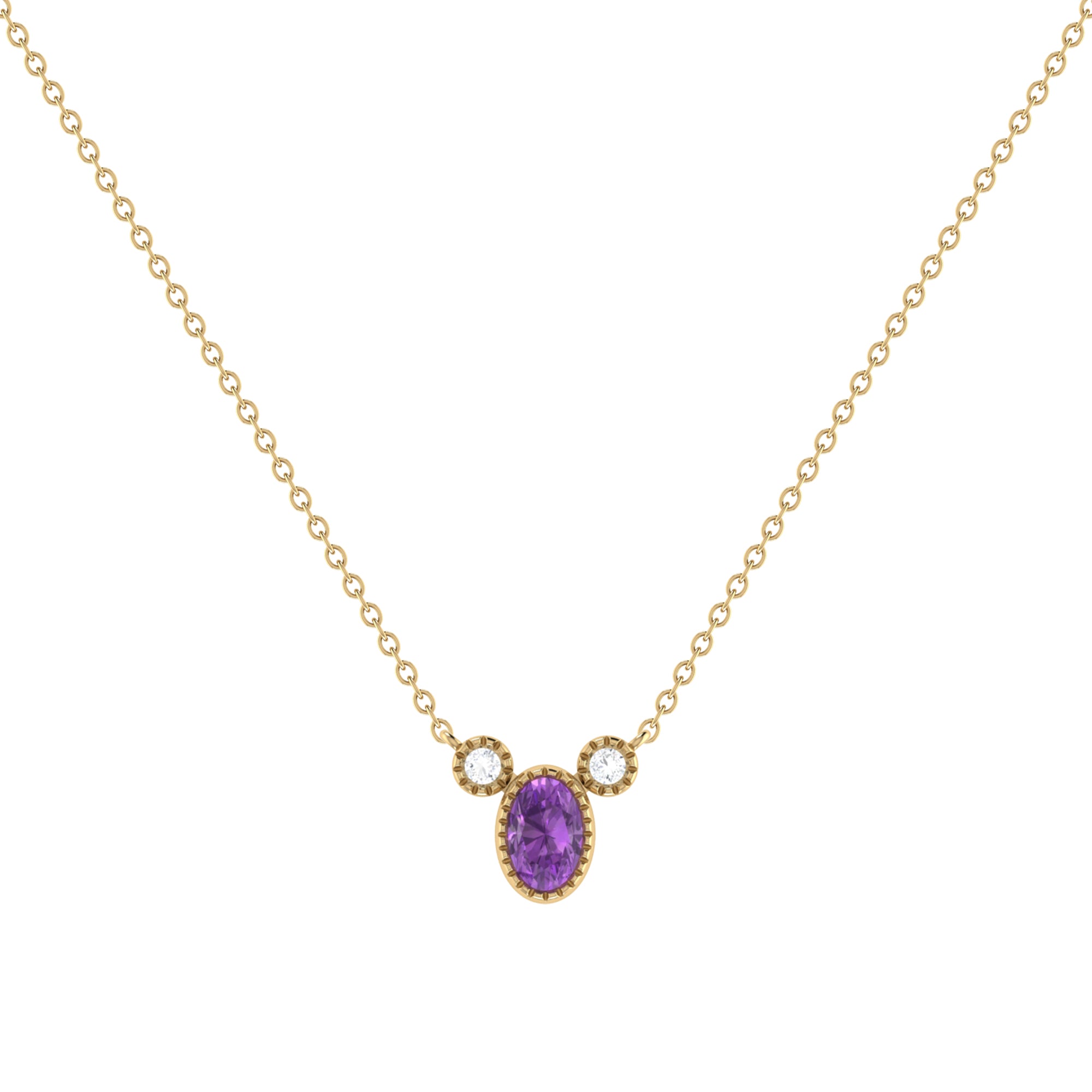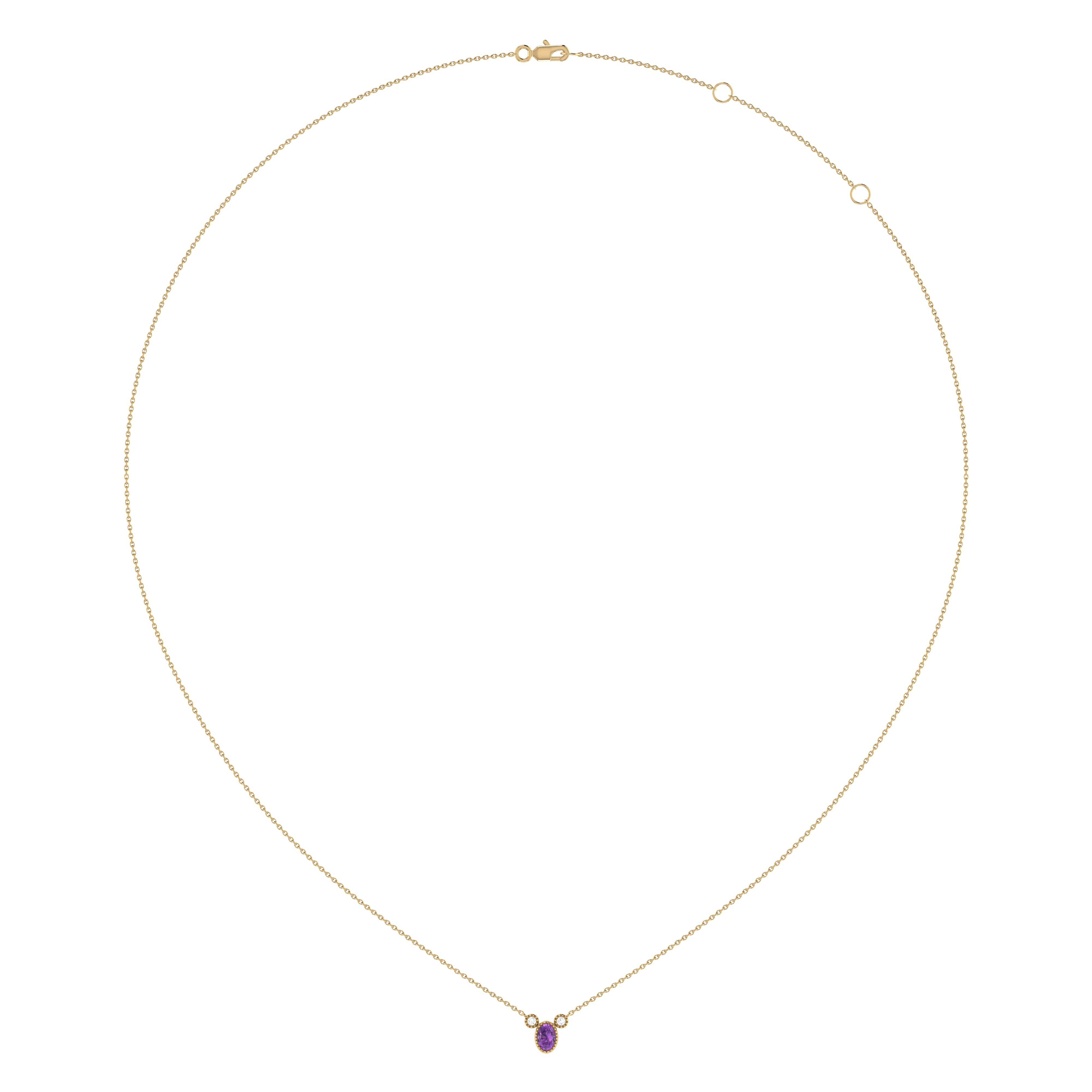 Oval Cut Amethyst & Diamond Birthstone Necklace In 14K Yellow Gold