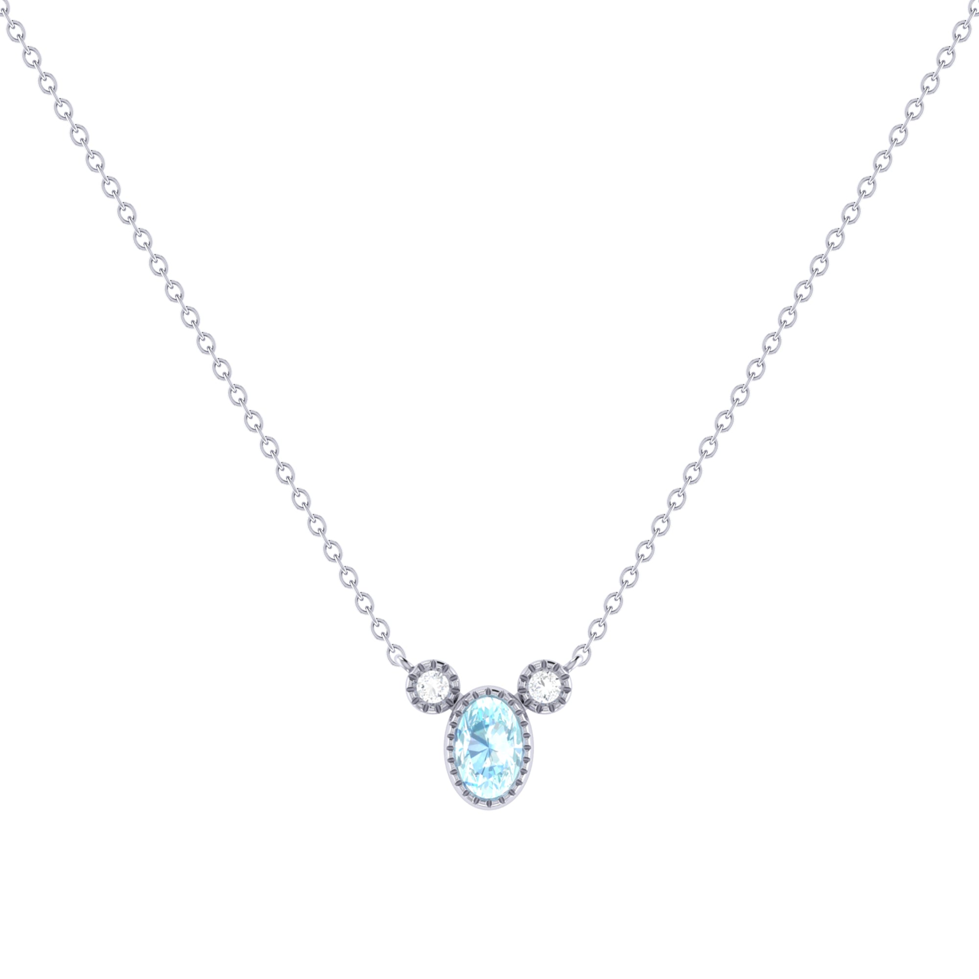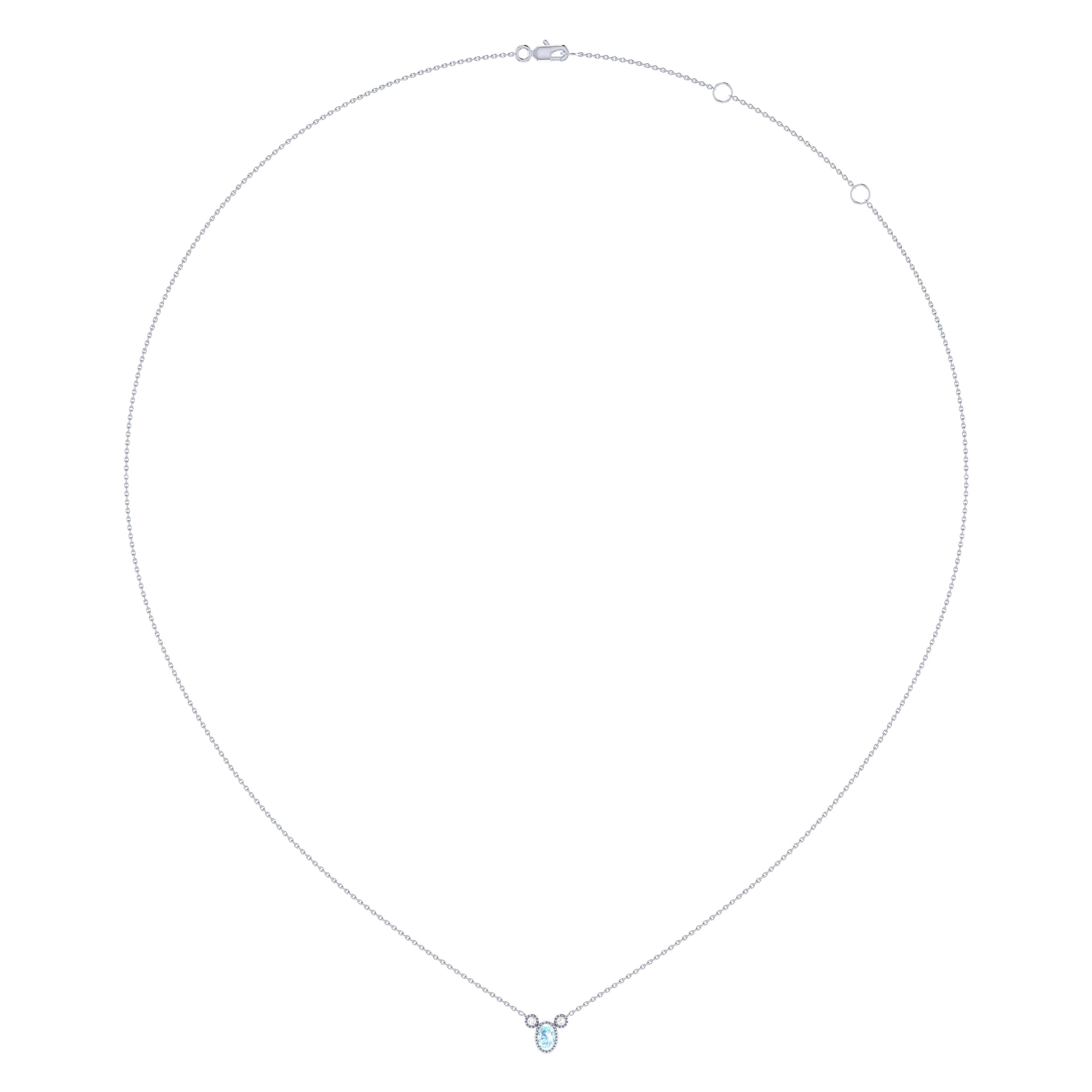 Oval Cut Aquamarine & Diamond Birthstone Necklace In 14K White Gold
