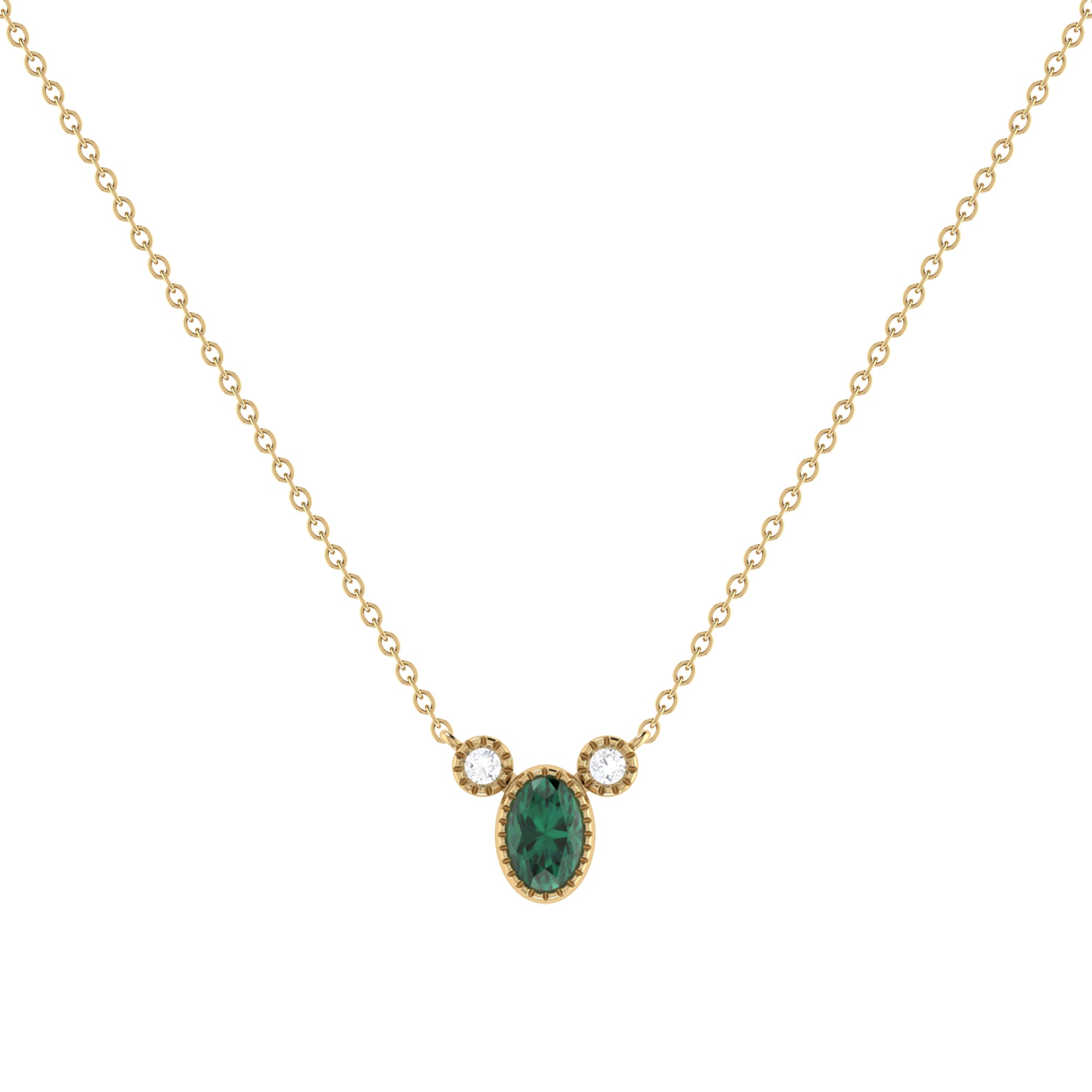Oval Cut Emerald & Diamond Birthstone Necklace In 14K Yellow Gold
