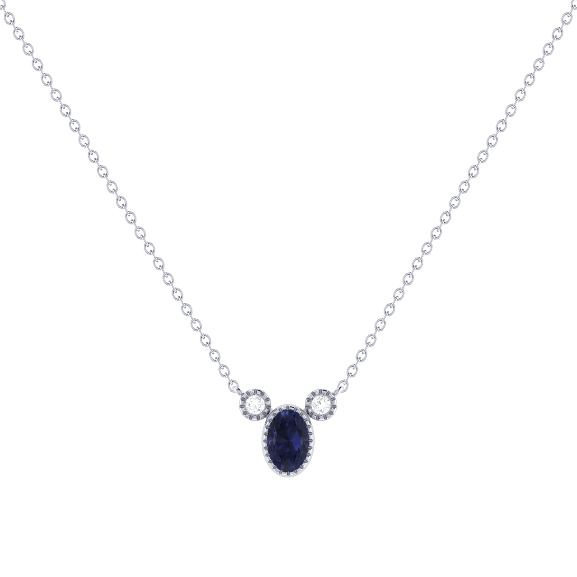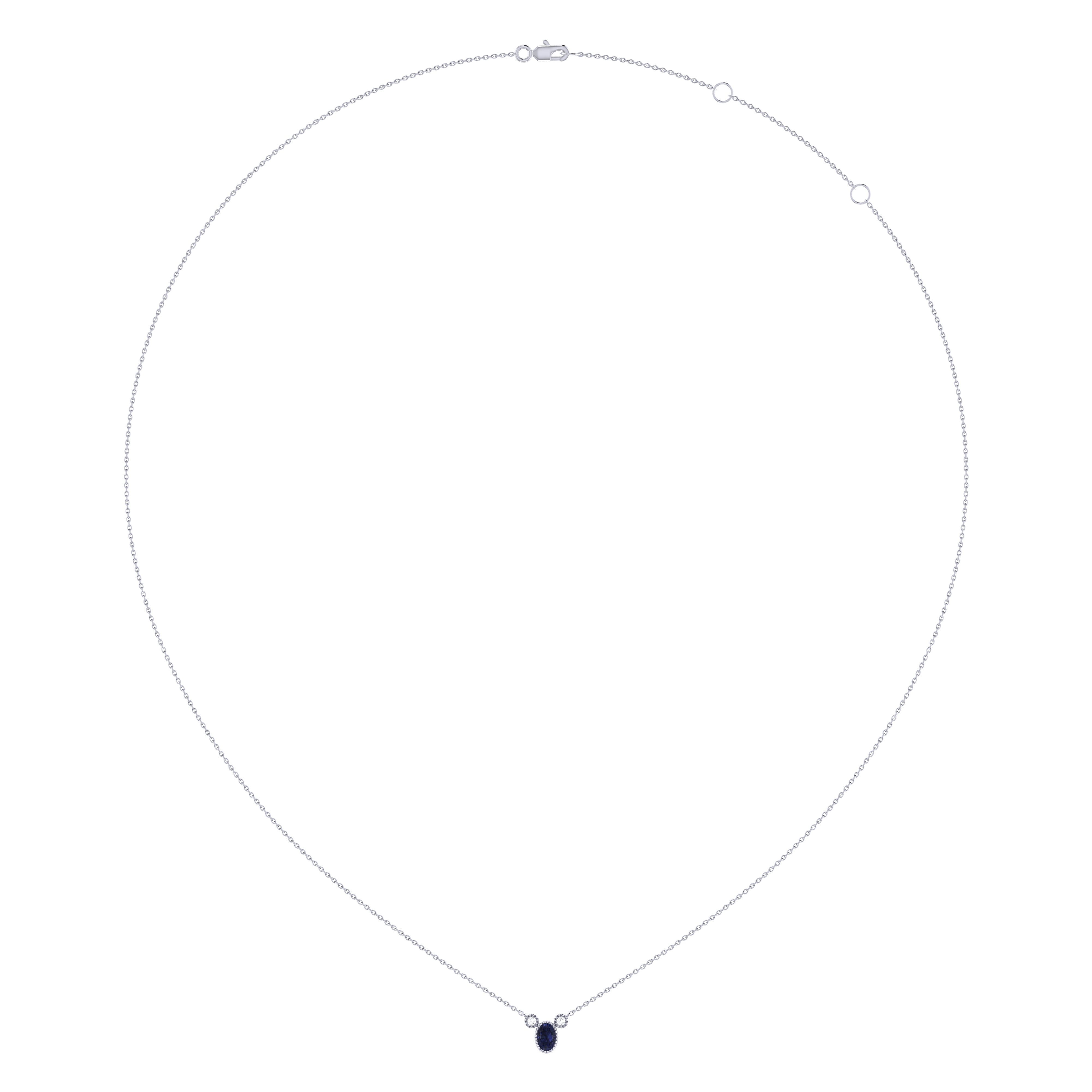 Oval Cut Sapphire & Diamond Birthstone Necklace In 14K White Gold