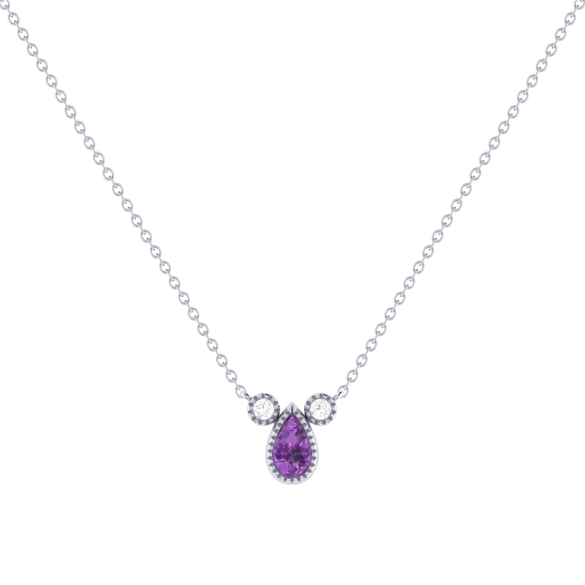 Pear Shaped Amethyst & Diamond Birthstone Necklace In 14K White Gold