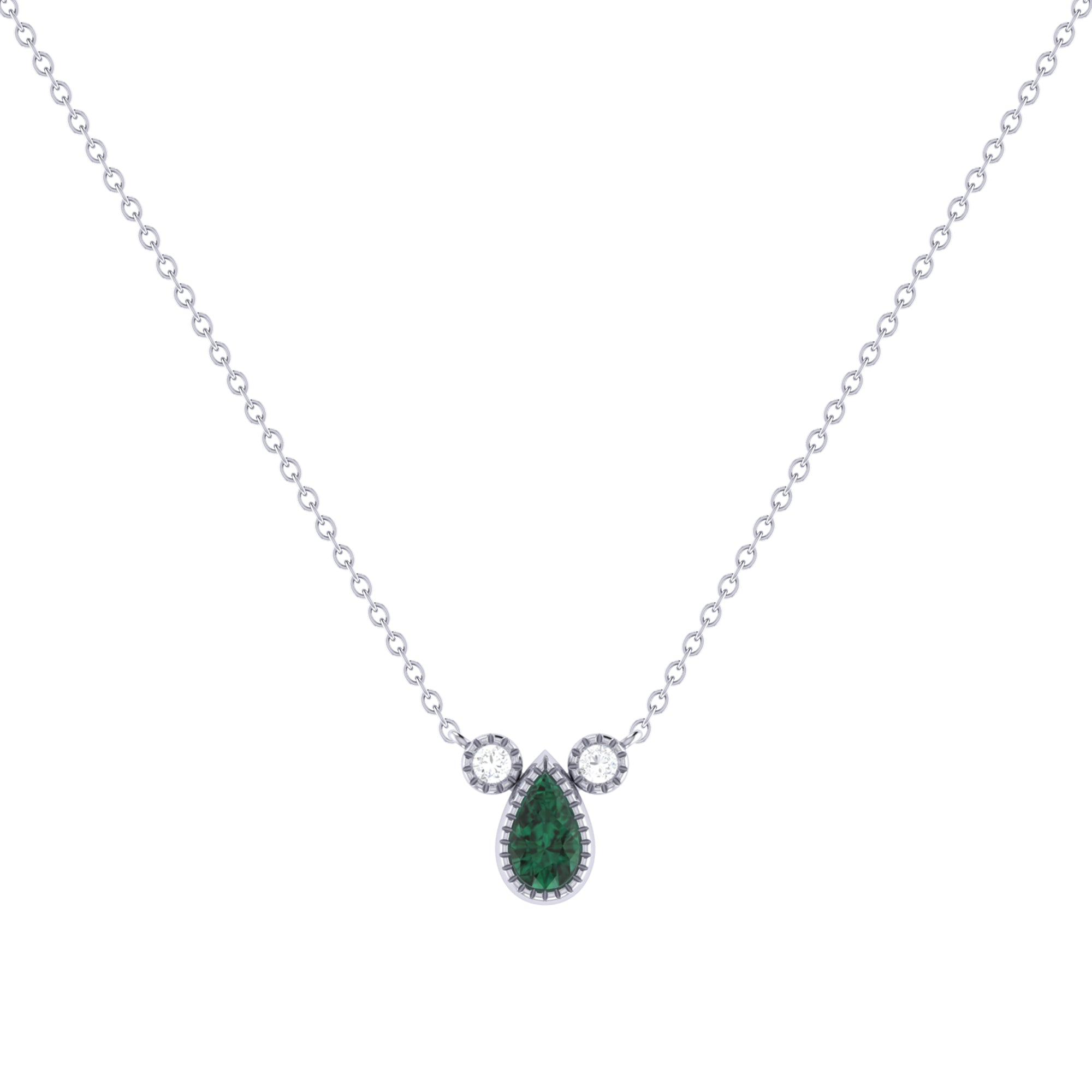 Pear Shaped Emerald & Diamond Birthstone Necklace In 14K White Gold