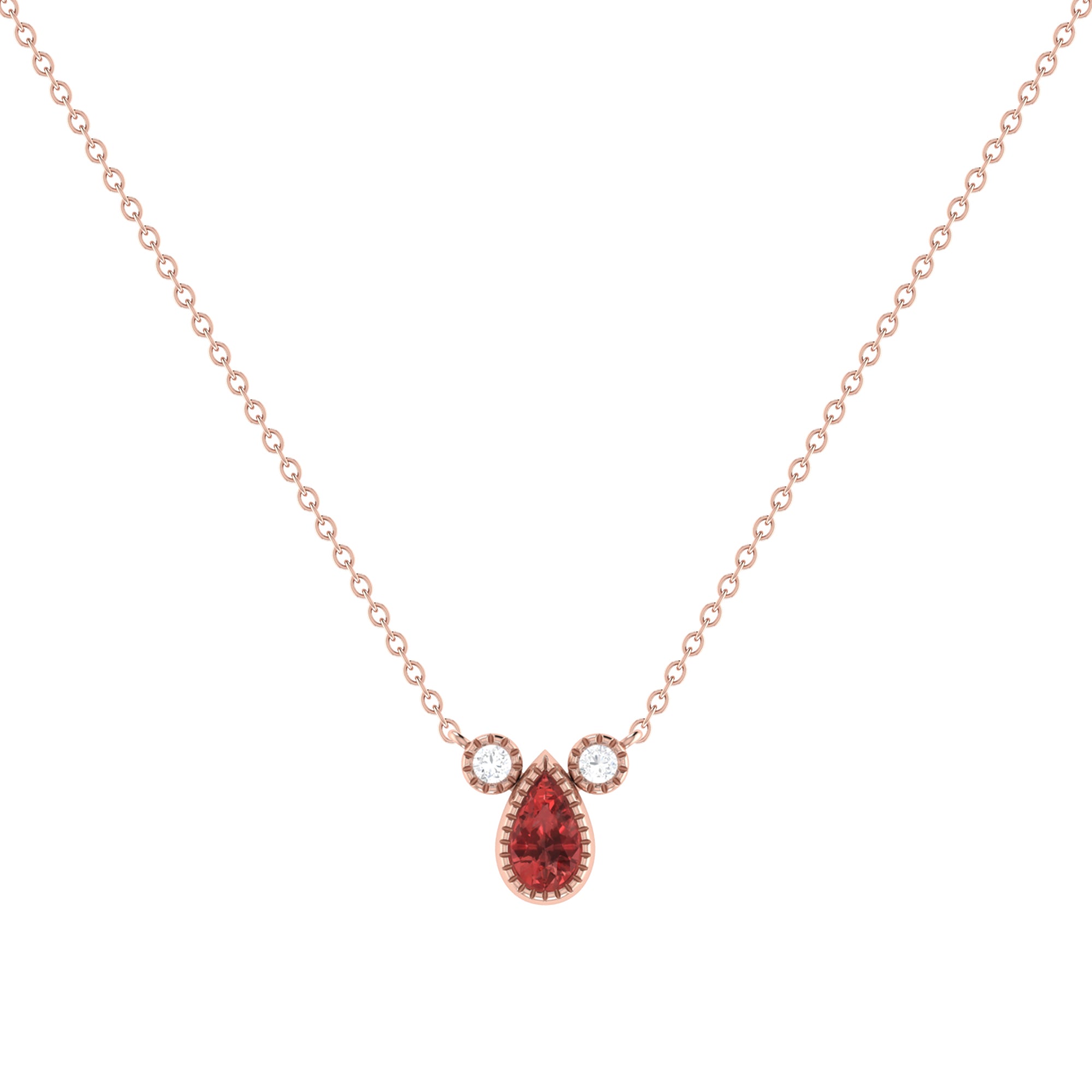 Pear Shaped Garnet & Diamond Birthstone Necklace In 14K Rose Gold