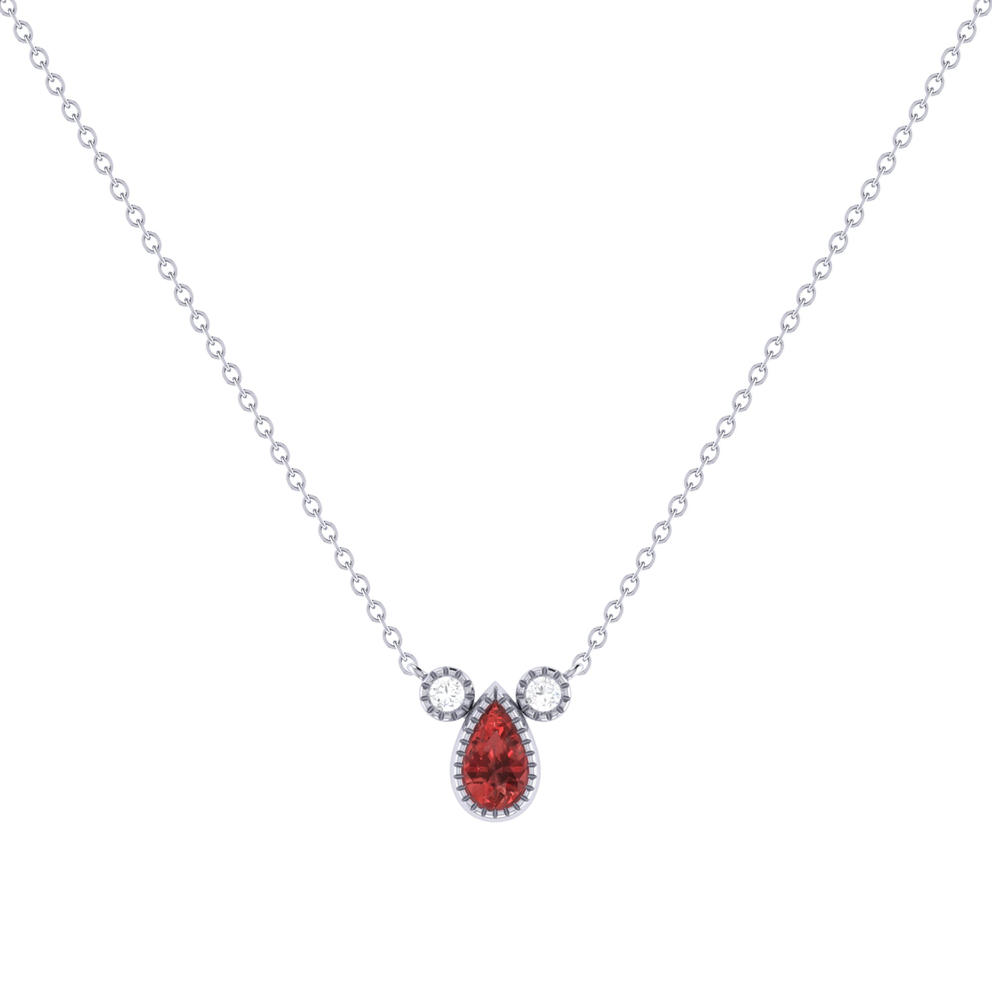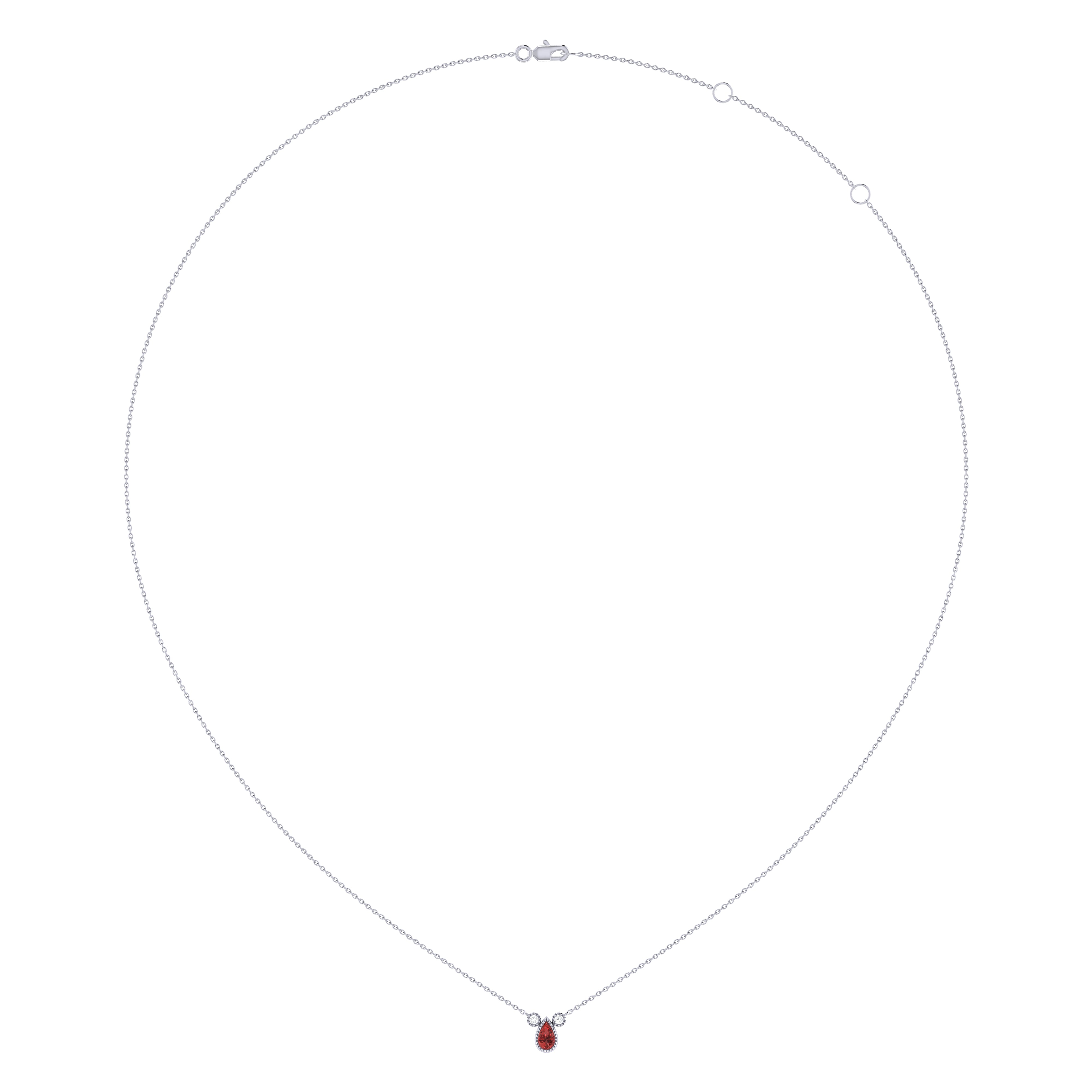 Pear Shaped Garnet & Diamond Birthstone Necklace In 14K White Gold