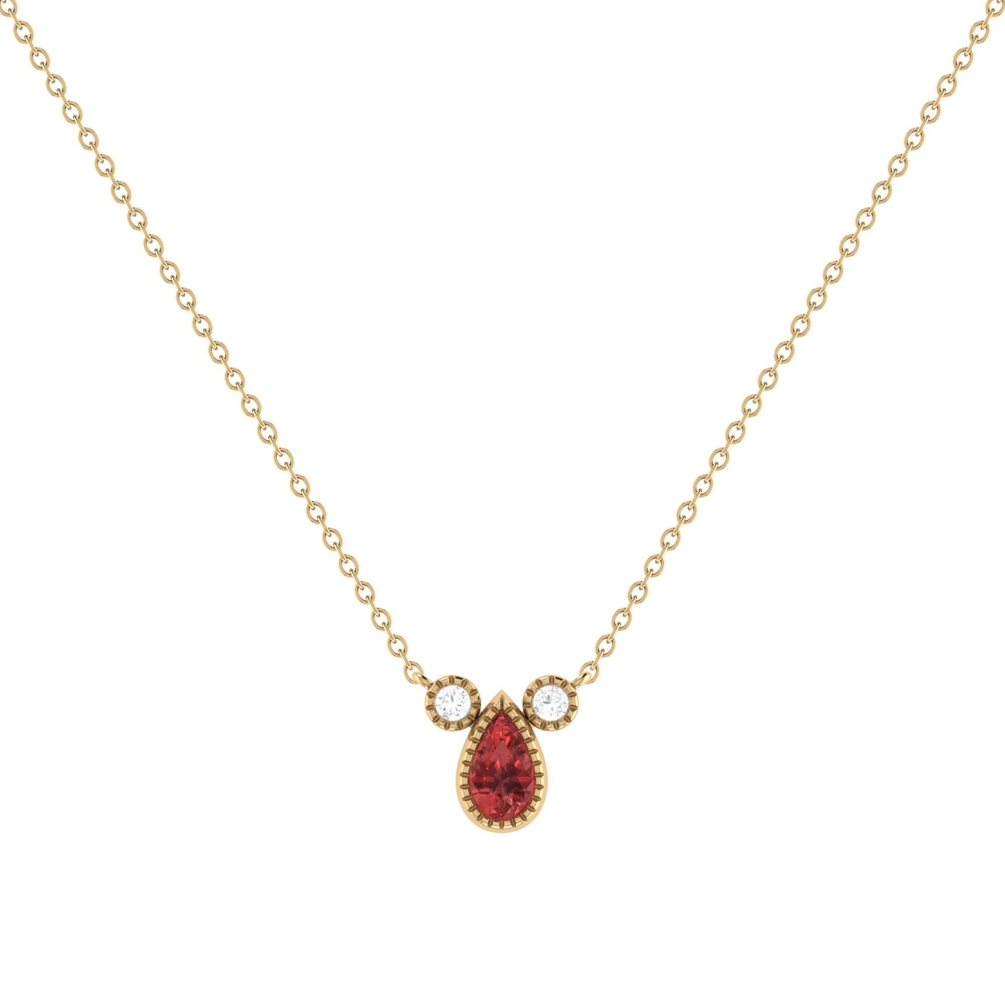 Pear Shaped Garnet & Diamond Birthstone Necklace In 14K Yellow Gold