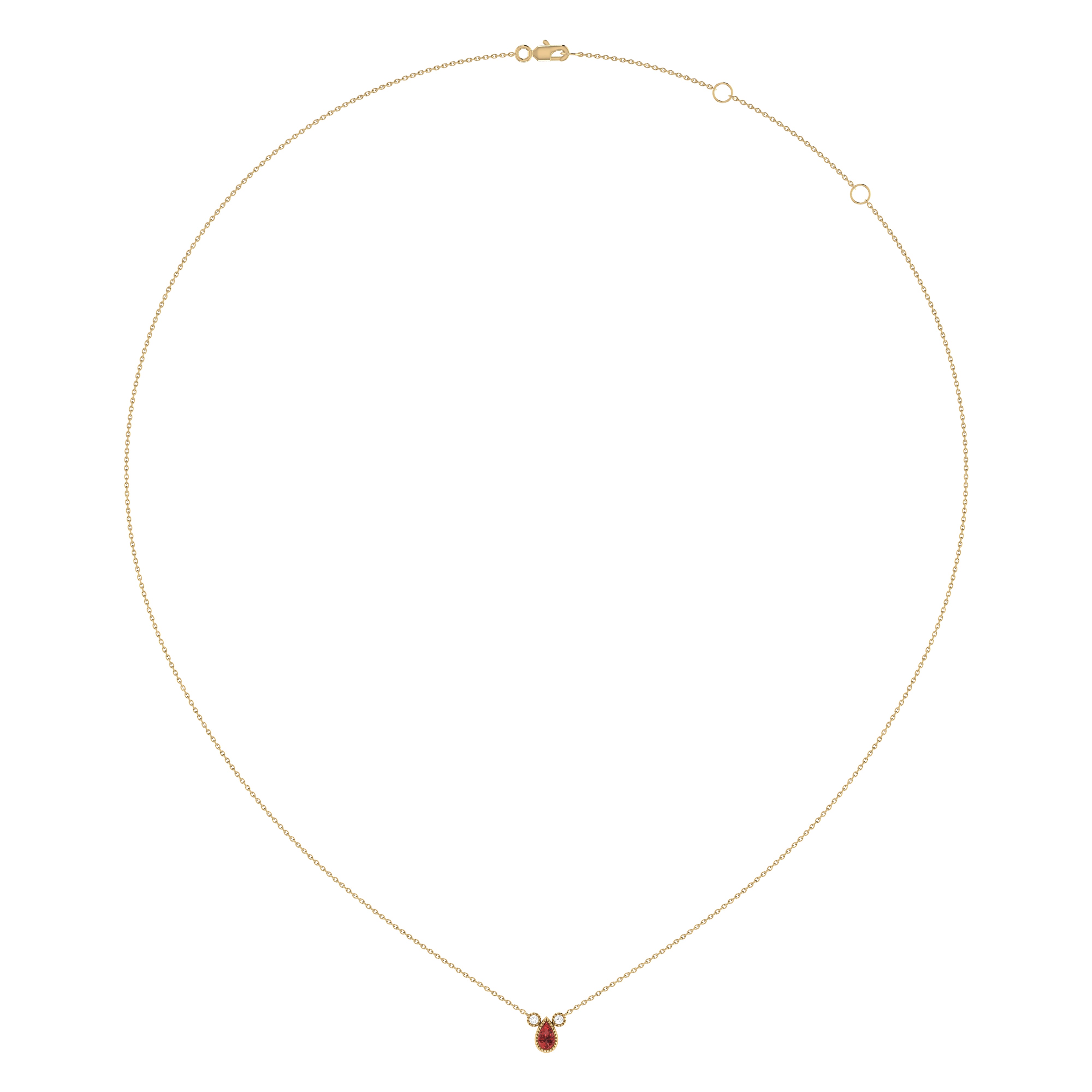 Crafted in 14K Yellow Gold, this necklace features a pear shaped garnet gemstone (5 by 3 mm), along with 0.04 carats of genuine, natural diamonds in a bezel setting.
