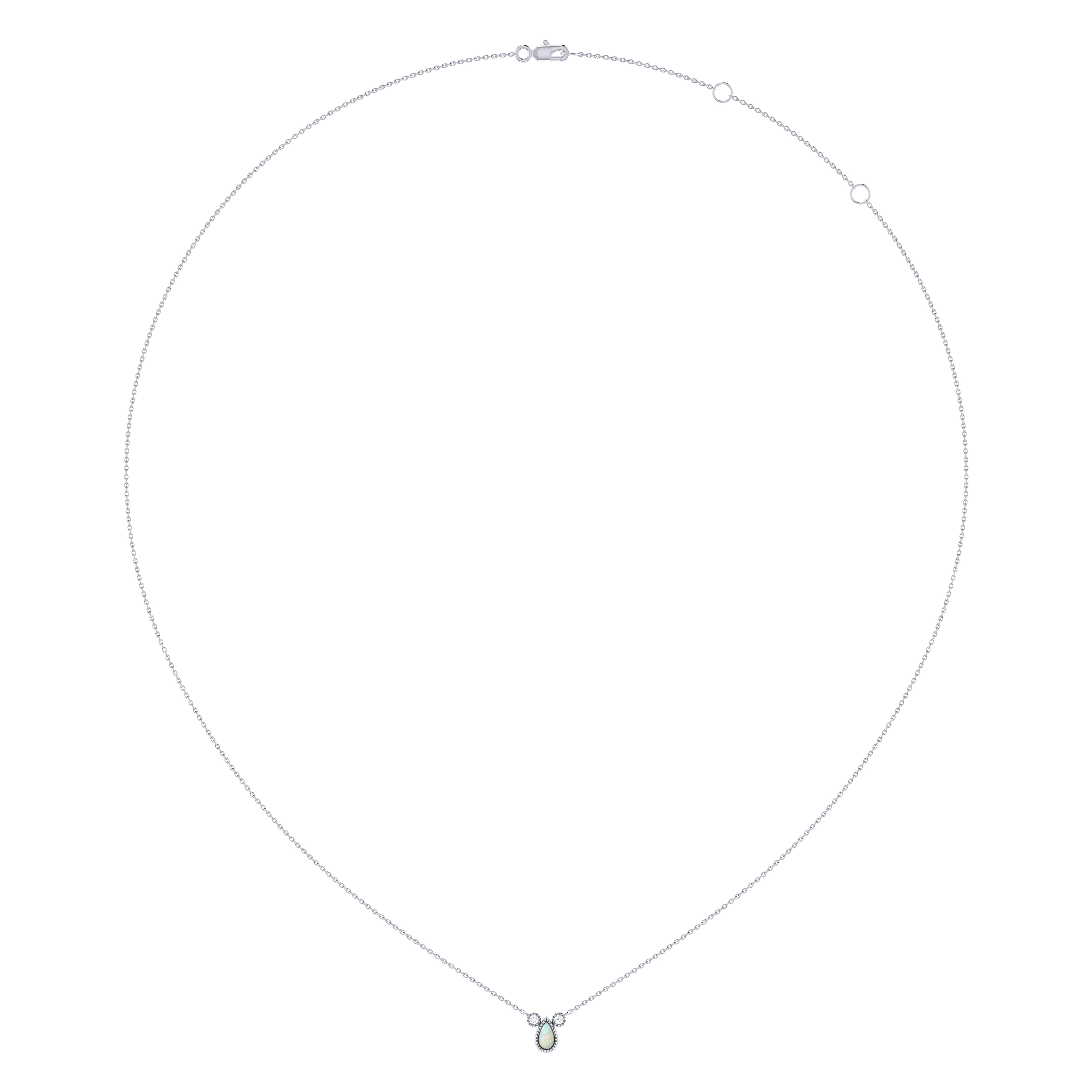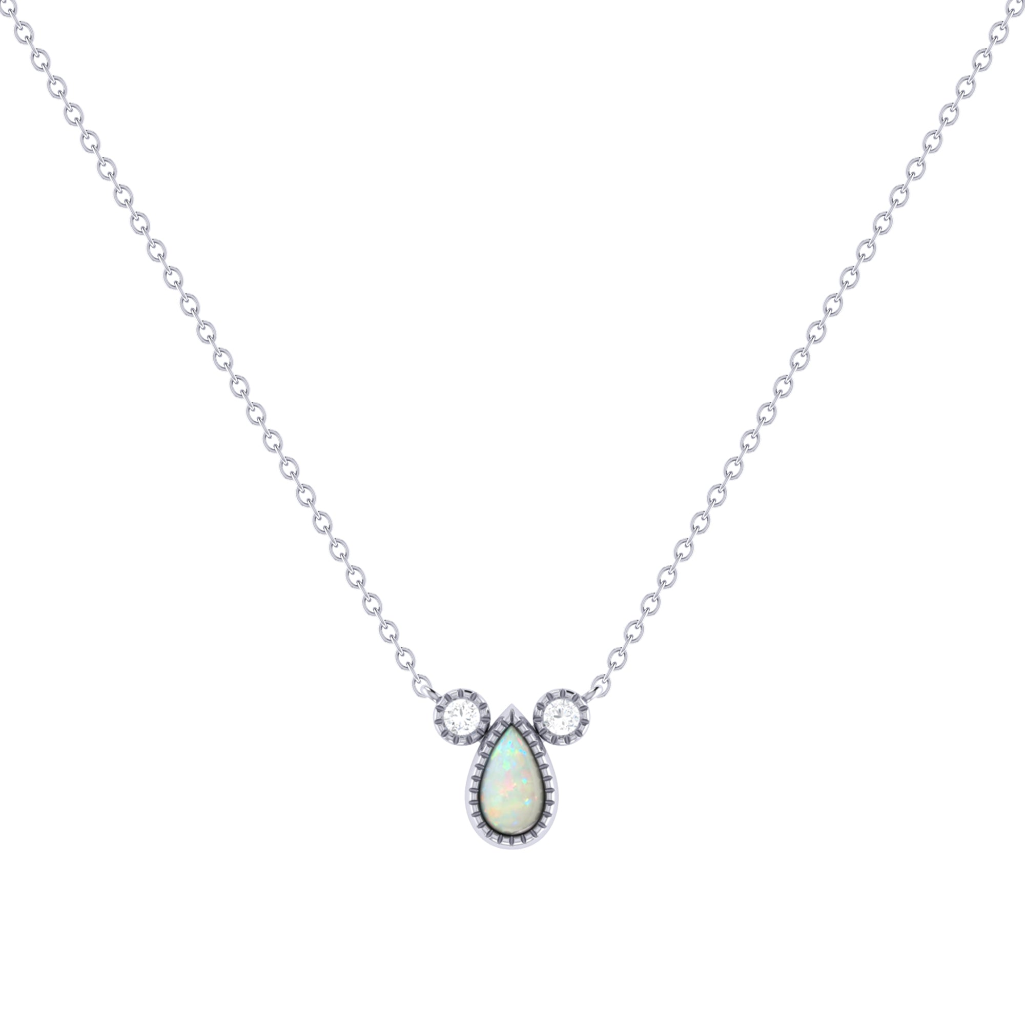 Pear Shaped Opal & Diamond Birthstone Necklace In 14K White Gold