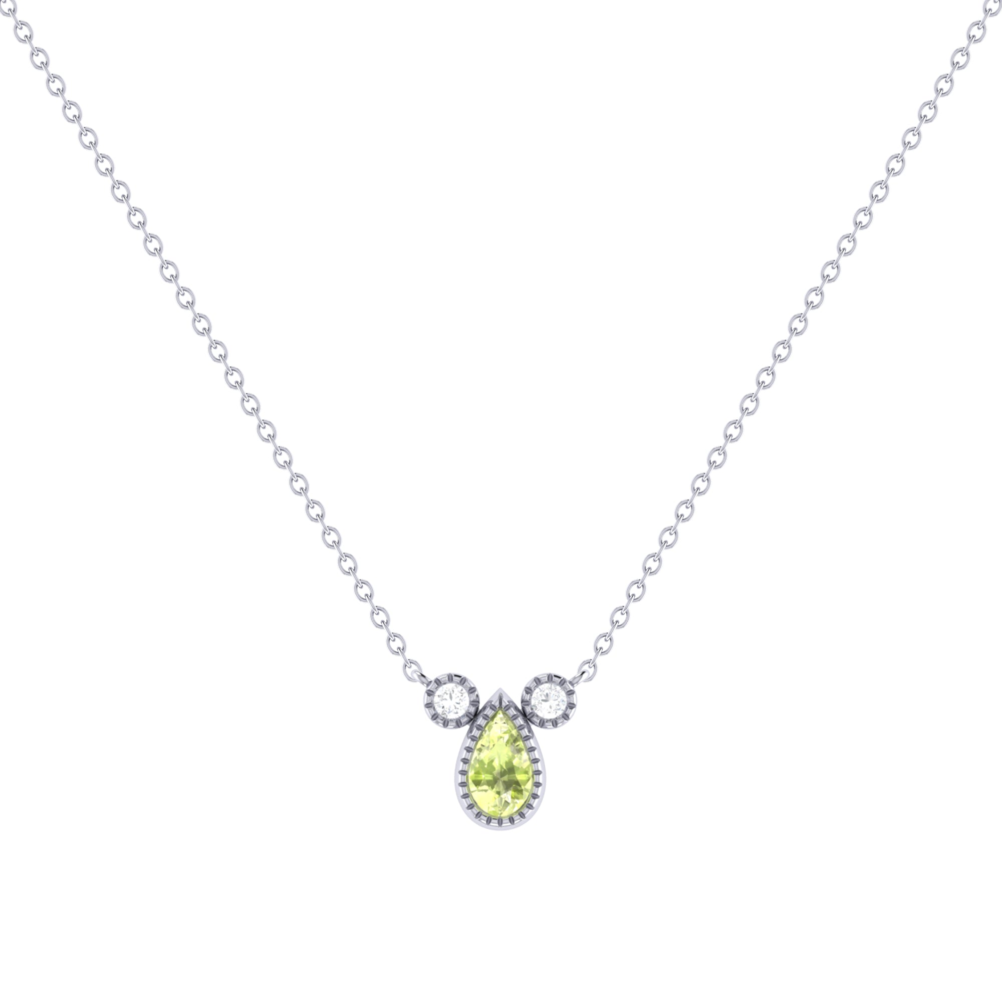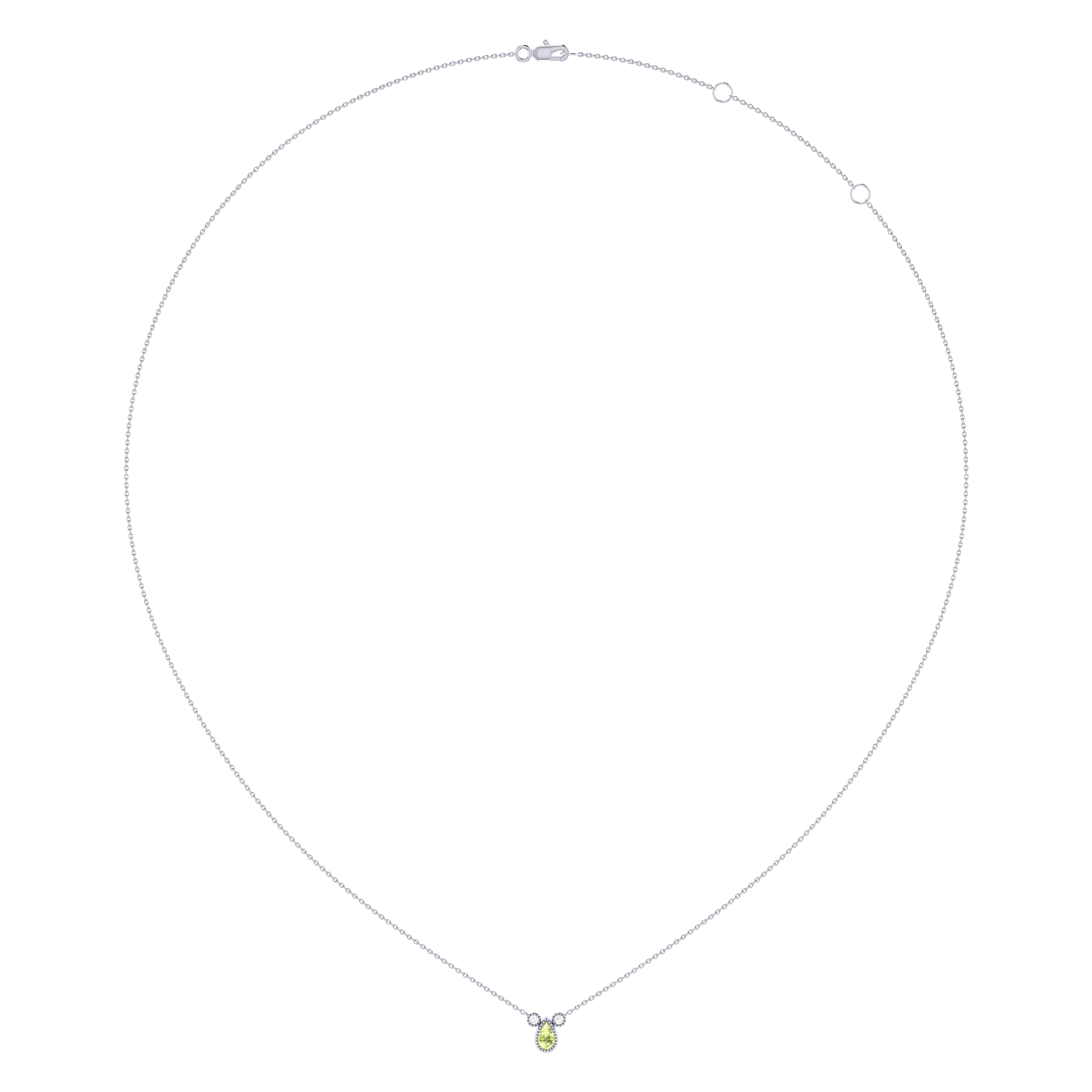Pear Shaped Peridot & Diamond Birthstone Necklace In 14K White Gold