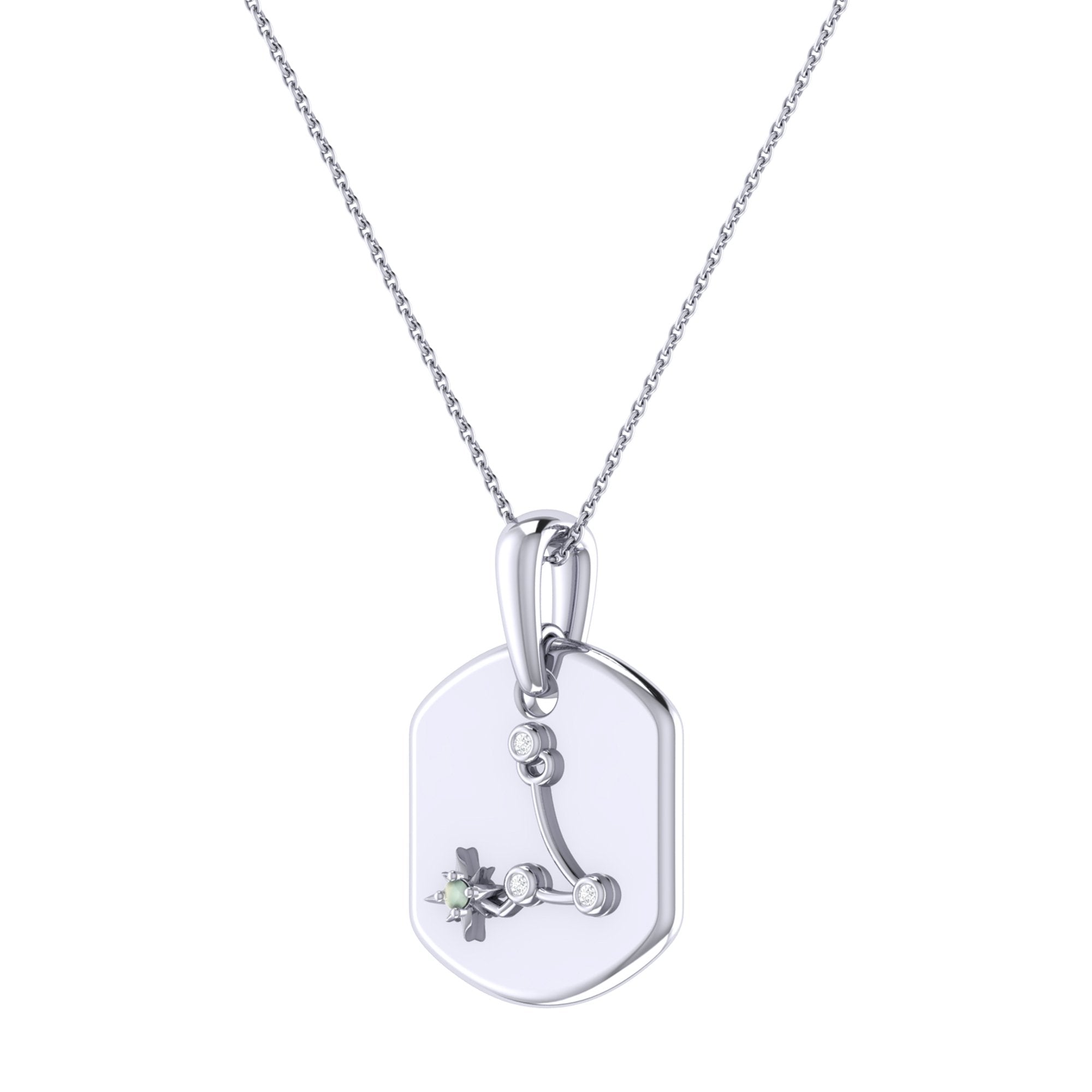 Pisces Two Fish Aquamarine & Diamond Constellation Tag Pendant Necklace in 14K White Gold
