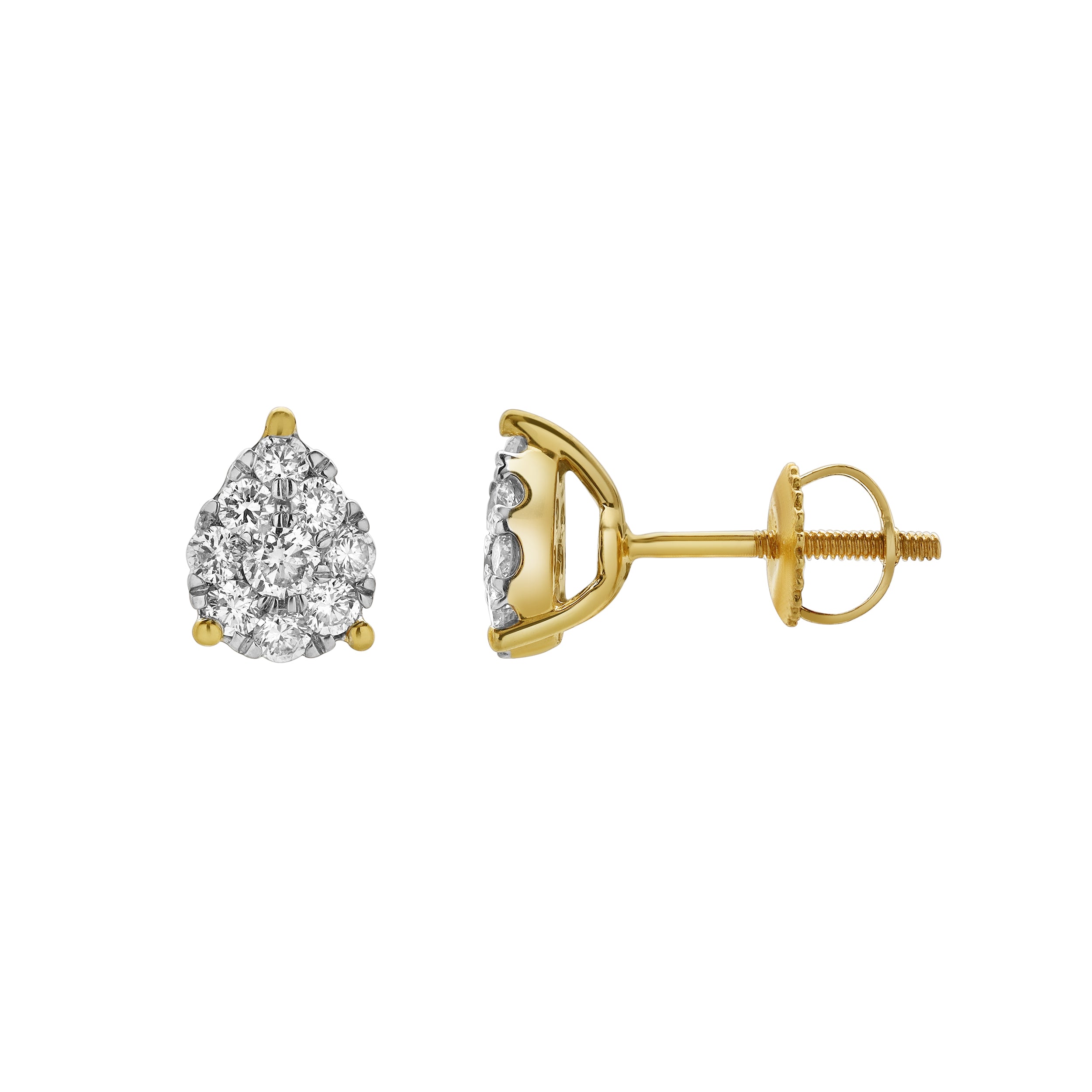 These gorgeous 0.46 carat lab grown diamond earrings feature a pear cluster design meticulously set in 14k yellow gold with a screwback setting. Their elegant arrangement highlights the timeless brilliance of the diamonds.