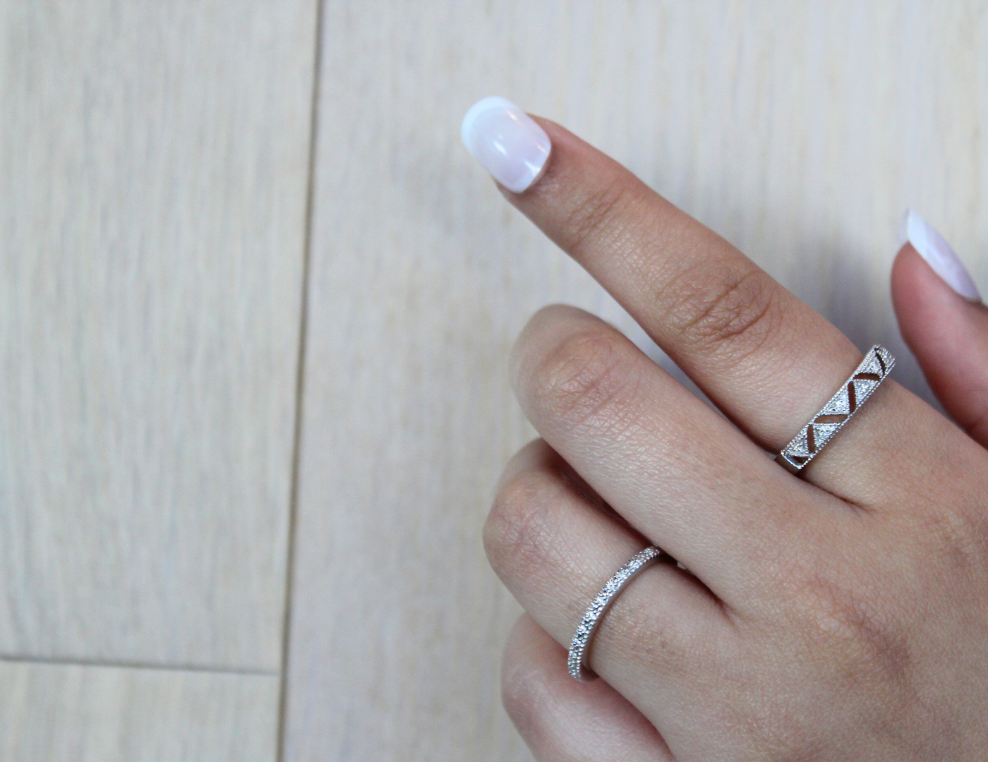 Prism 14K White Gold Round Diamond Studded Stackable Ring - 0.05cts