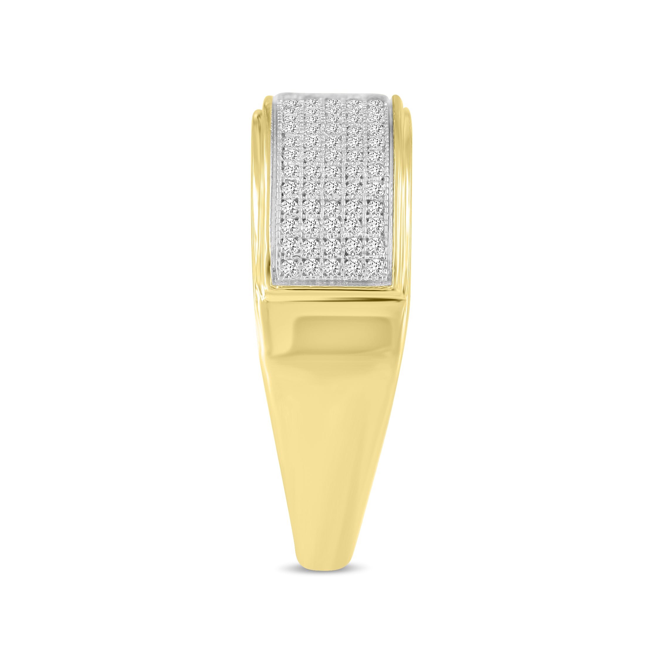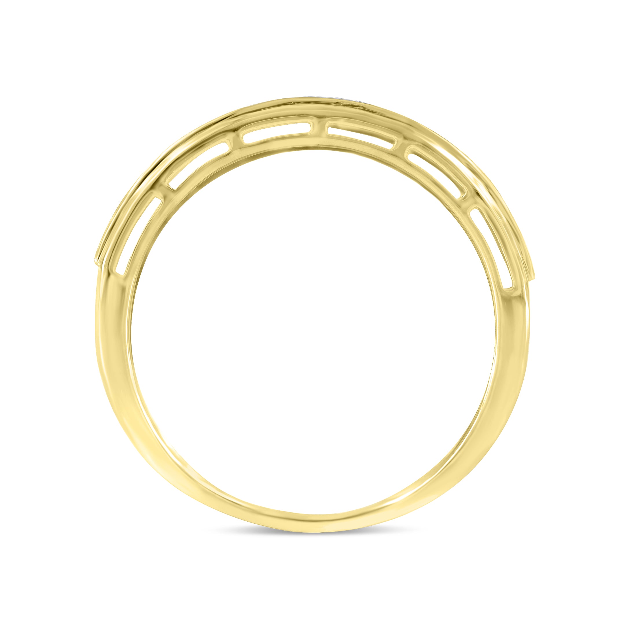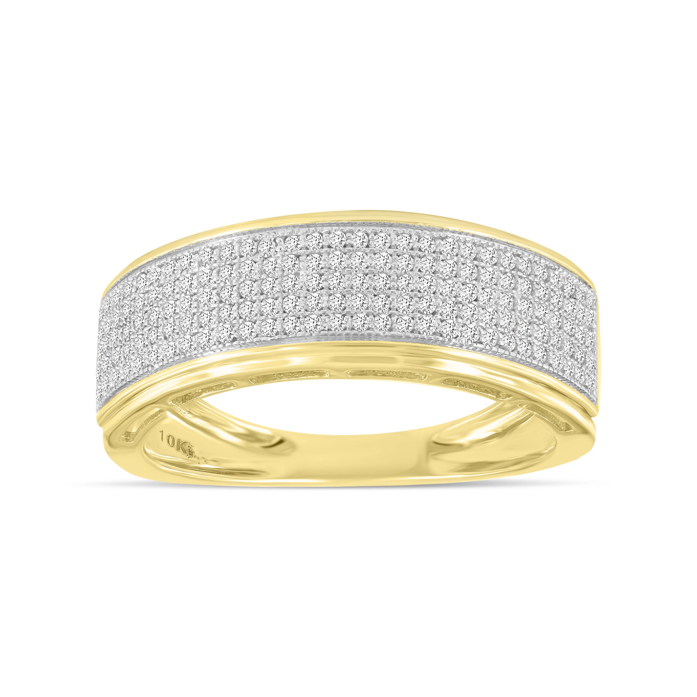 Introducing our elegant Unisex 10K Yellow Gold band ring with 5 rows of brilliant diamonds weighing 0.38 carats available in sizes 8 to 12. With a focus on timeless design this exquisite ring can be both a wedding band or the perfect statement accessory for an exciting evening.