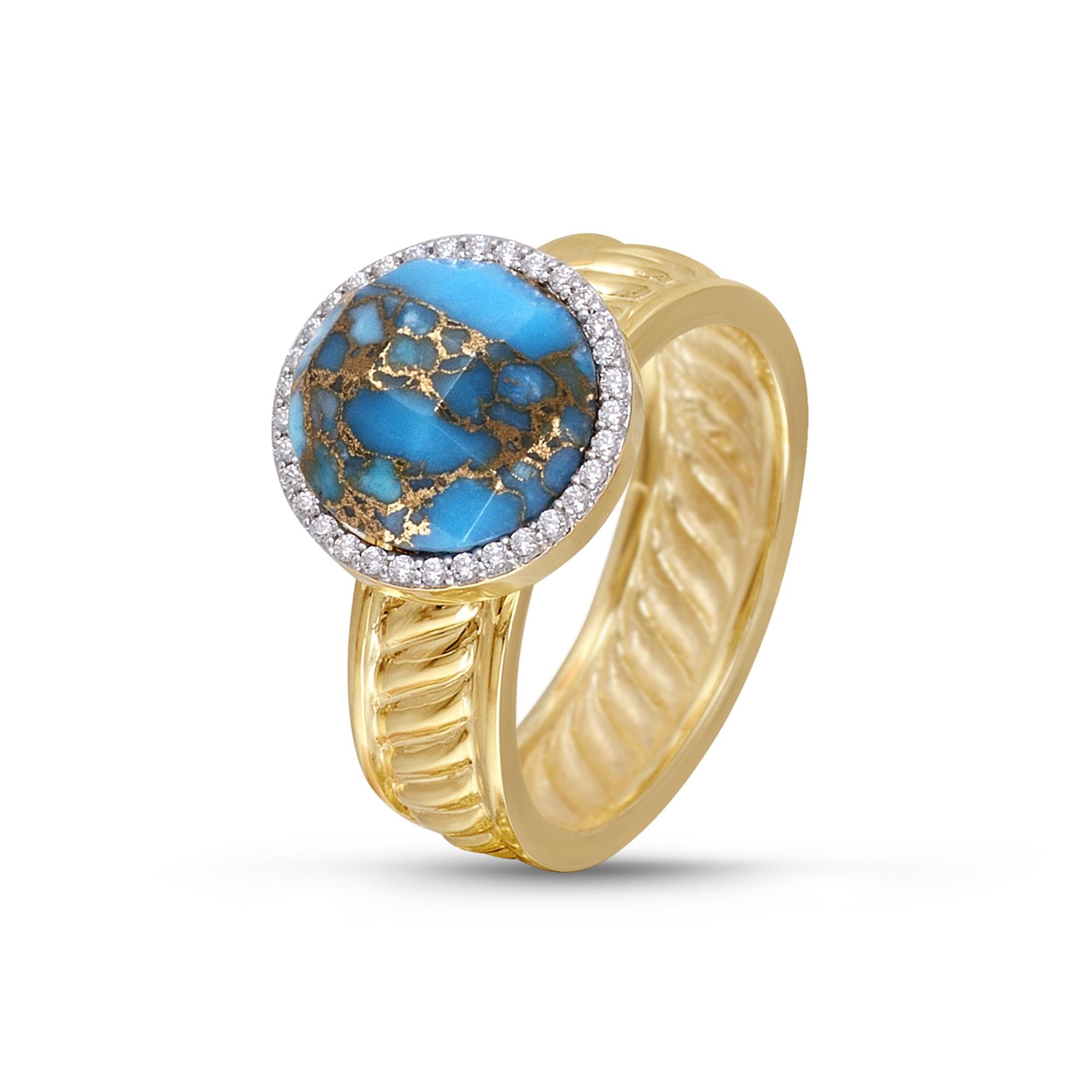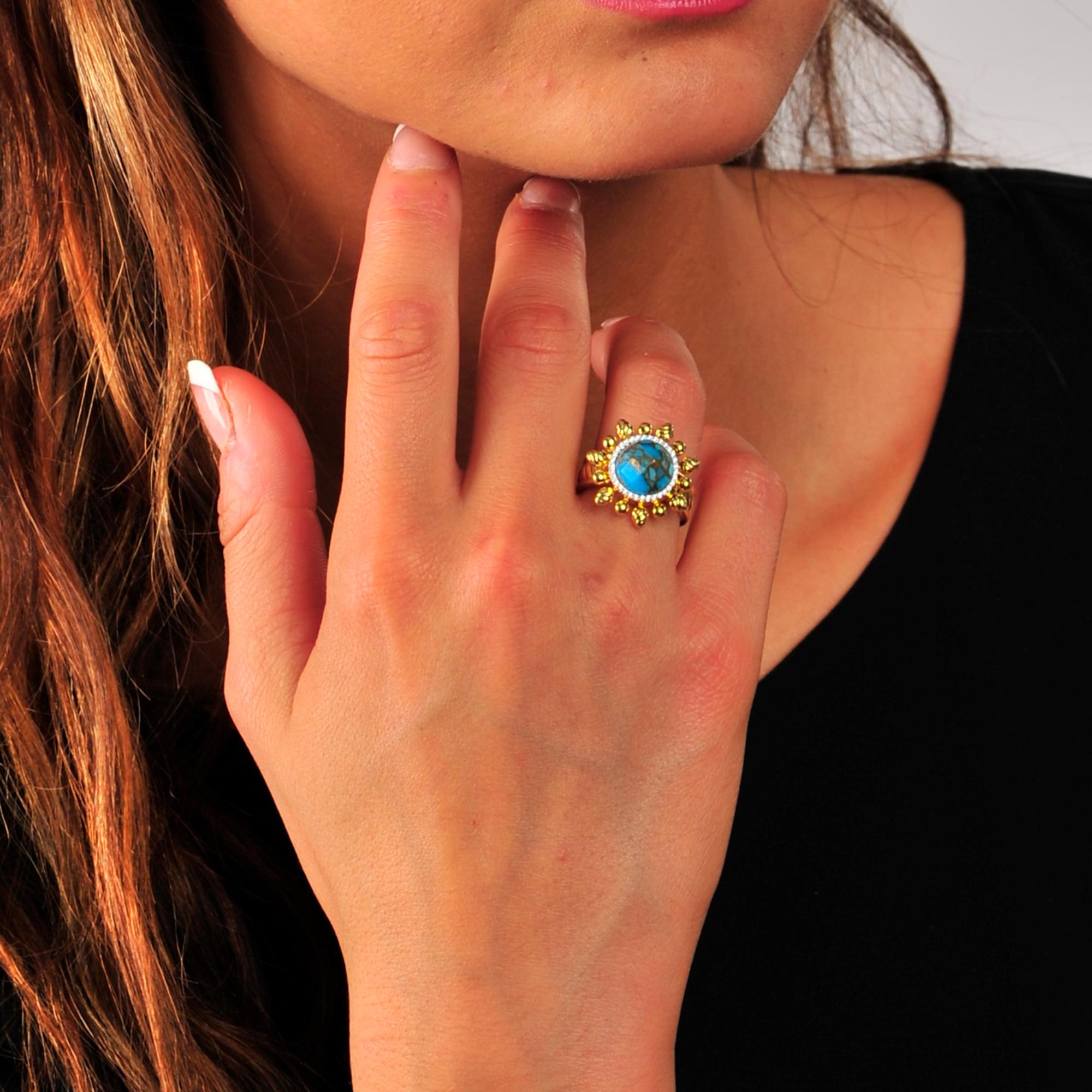 Rise & Shine Turquoise & Diamond Detachable Sun Ring in 14K Yellow Gold Plated Sterling Silver