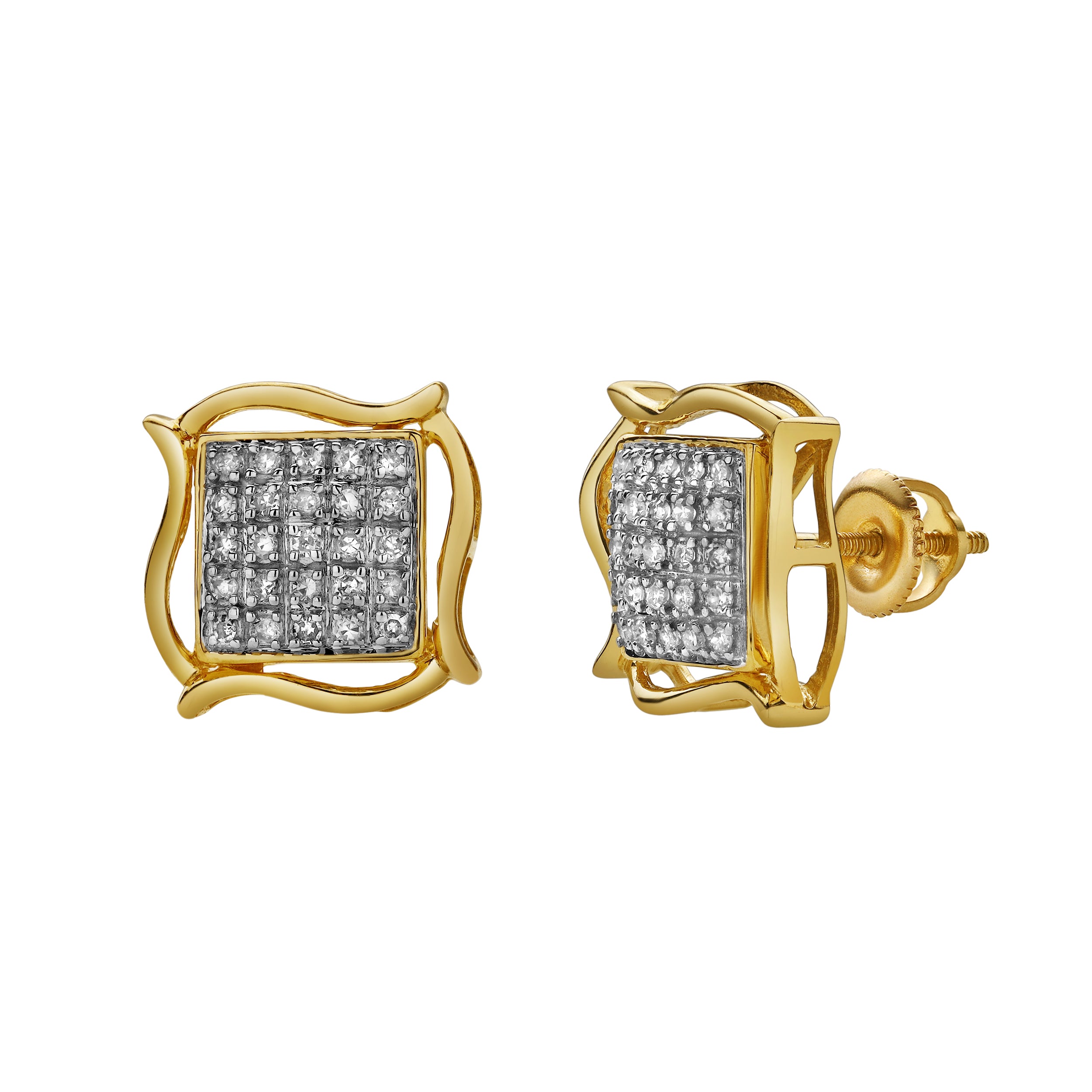 These gorgeous 0.2 carat diamond earrings feature a elegant cluster design meticulously set in 10K yellow gold with a screwback setting. Their elegant arrangement highlights the timeless brilliance of the diamonds.