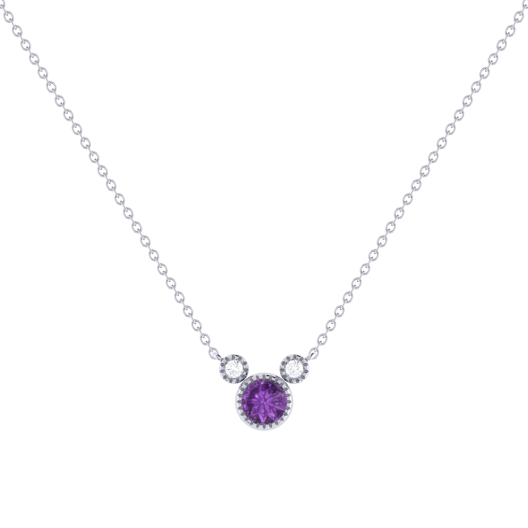 Round Cut Amethyst & Diamond Birthstone Necklace In 14K White Gold