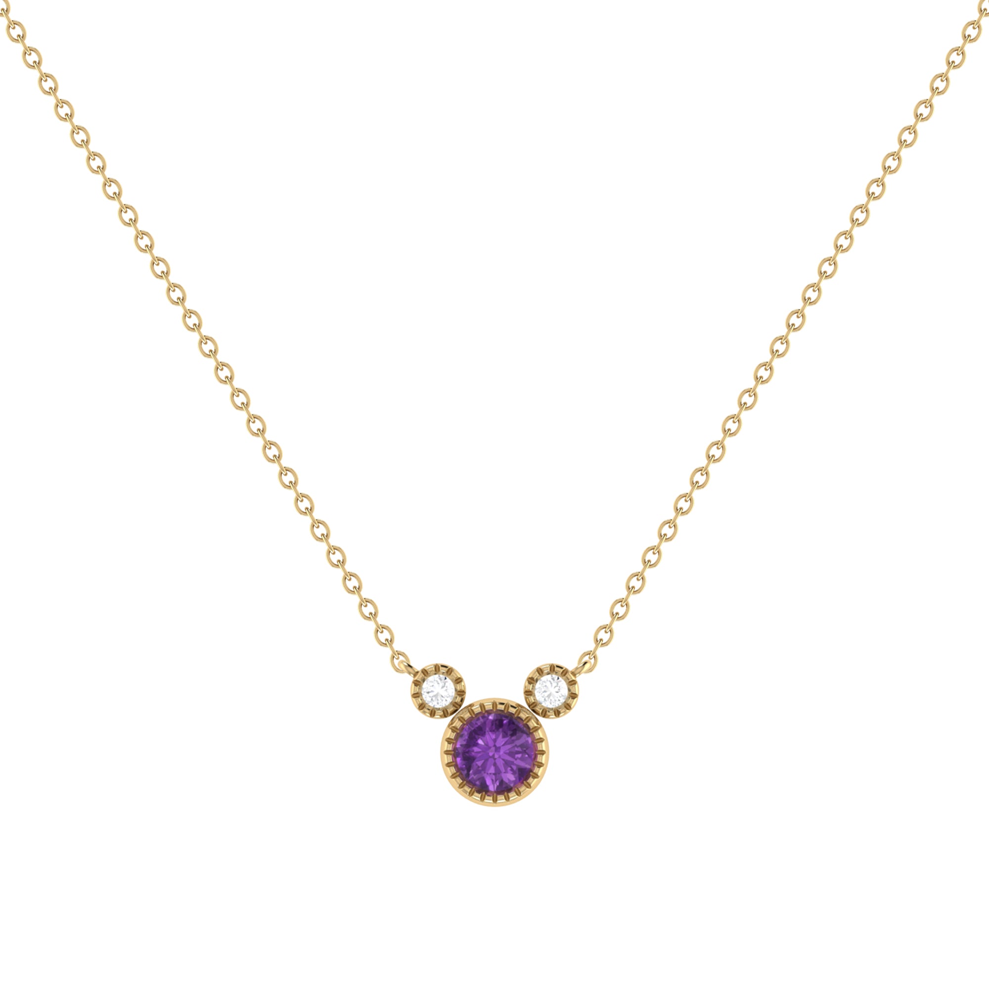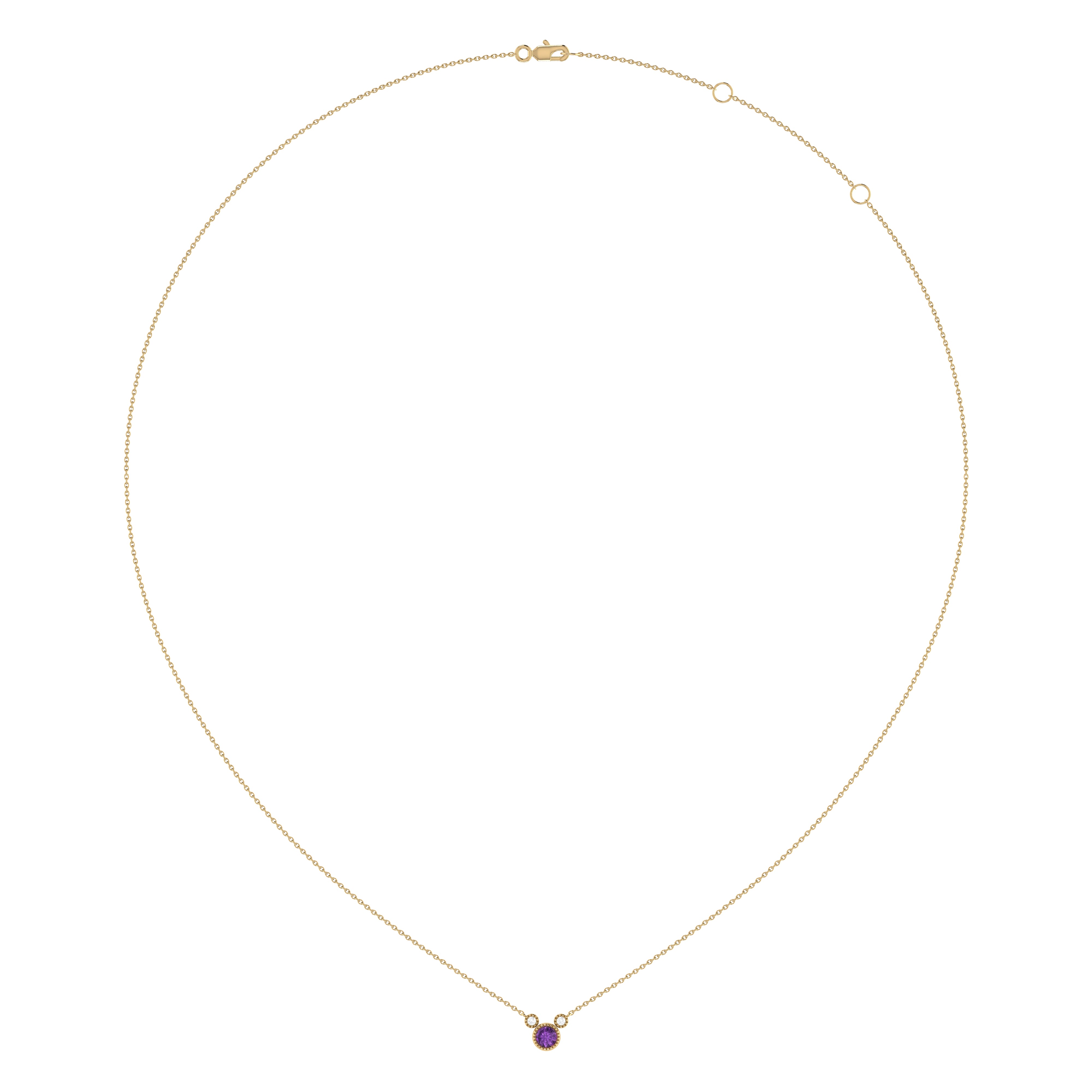 Round Cut Amethyst & Diamond Birthstone Necklace In 14K Yellow Gold