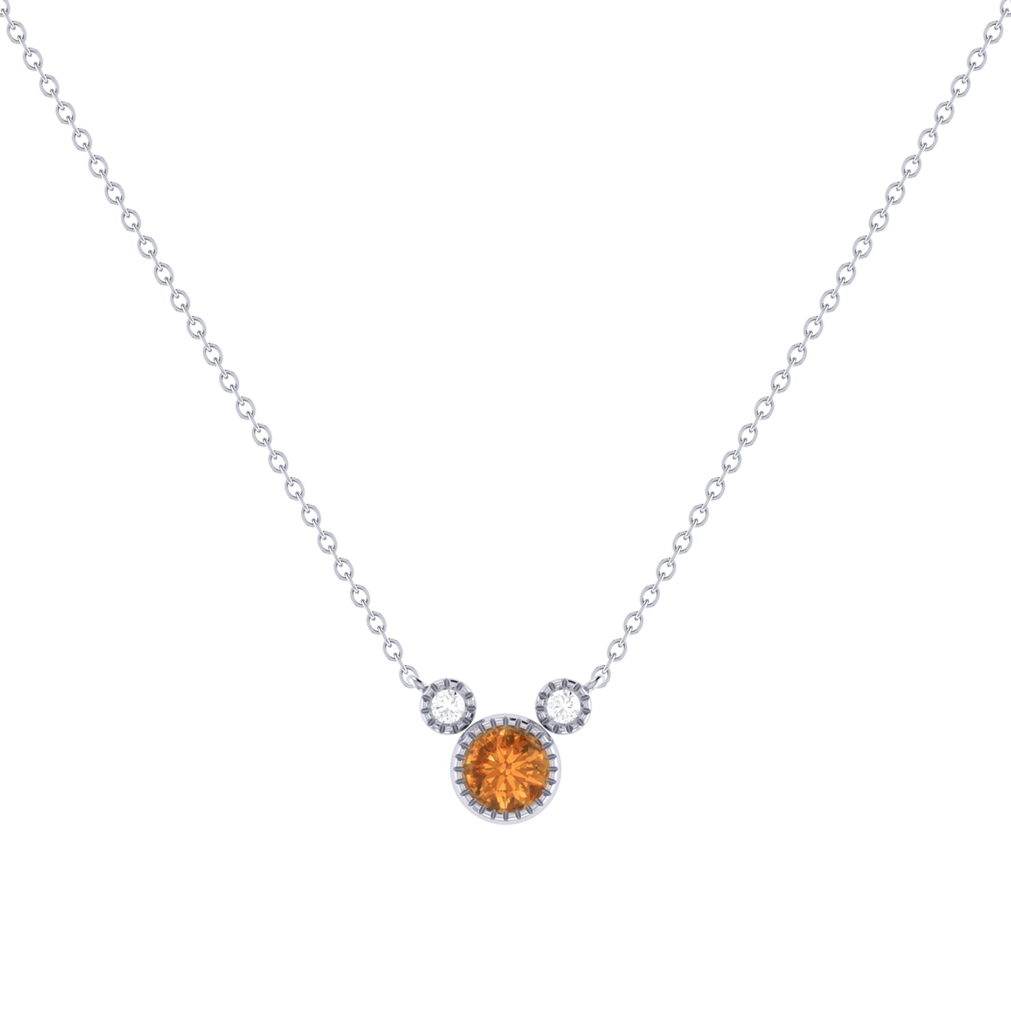 Round Cut Citrine & Diamond Birthstone Necklace In 14K White Gold