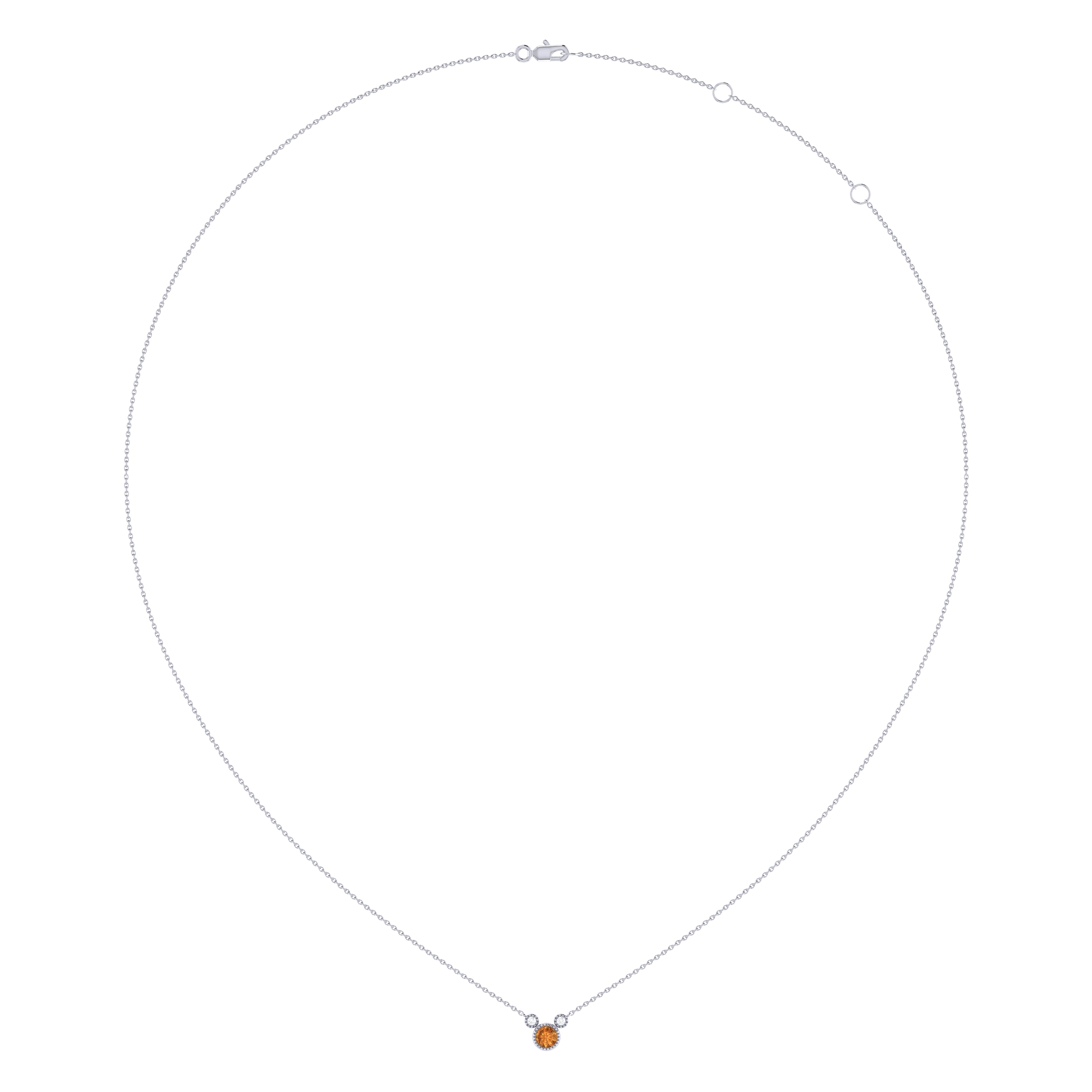 Crafted in 14K White Gold, this necklace features a round cut citrine gemstone (4 mm), along with 0.04 carats of genuine, natural diamonds in a bezel setting.