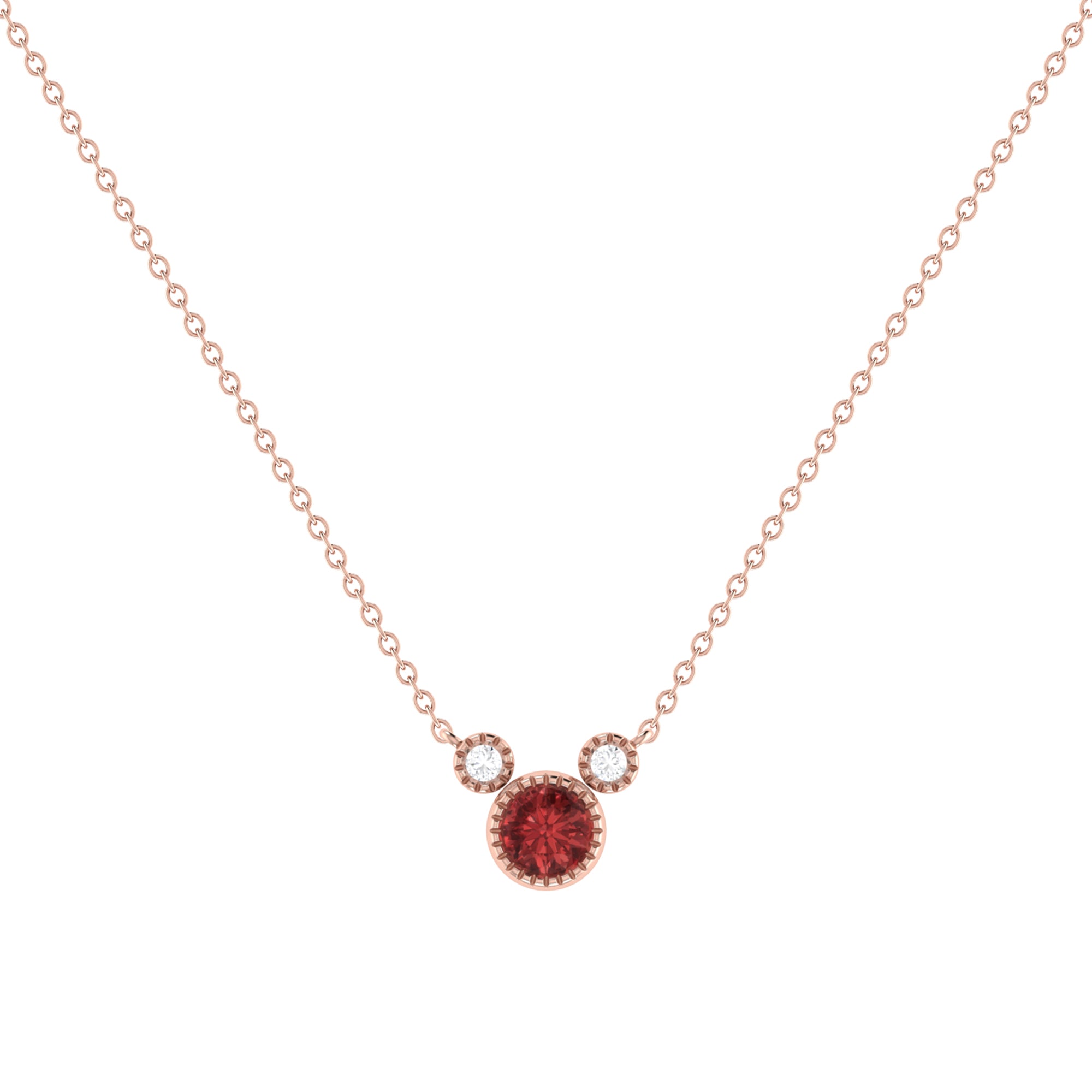 Round Cut Garnet & Diamond Birthstone Necklace In 14K Rose Gold