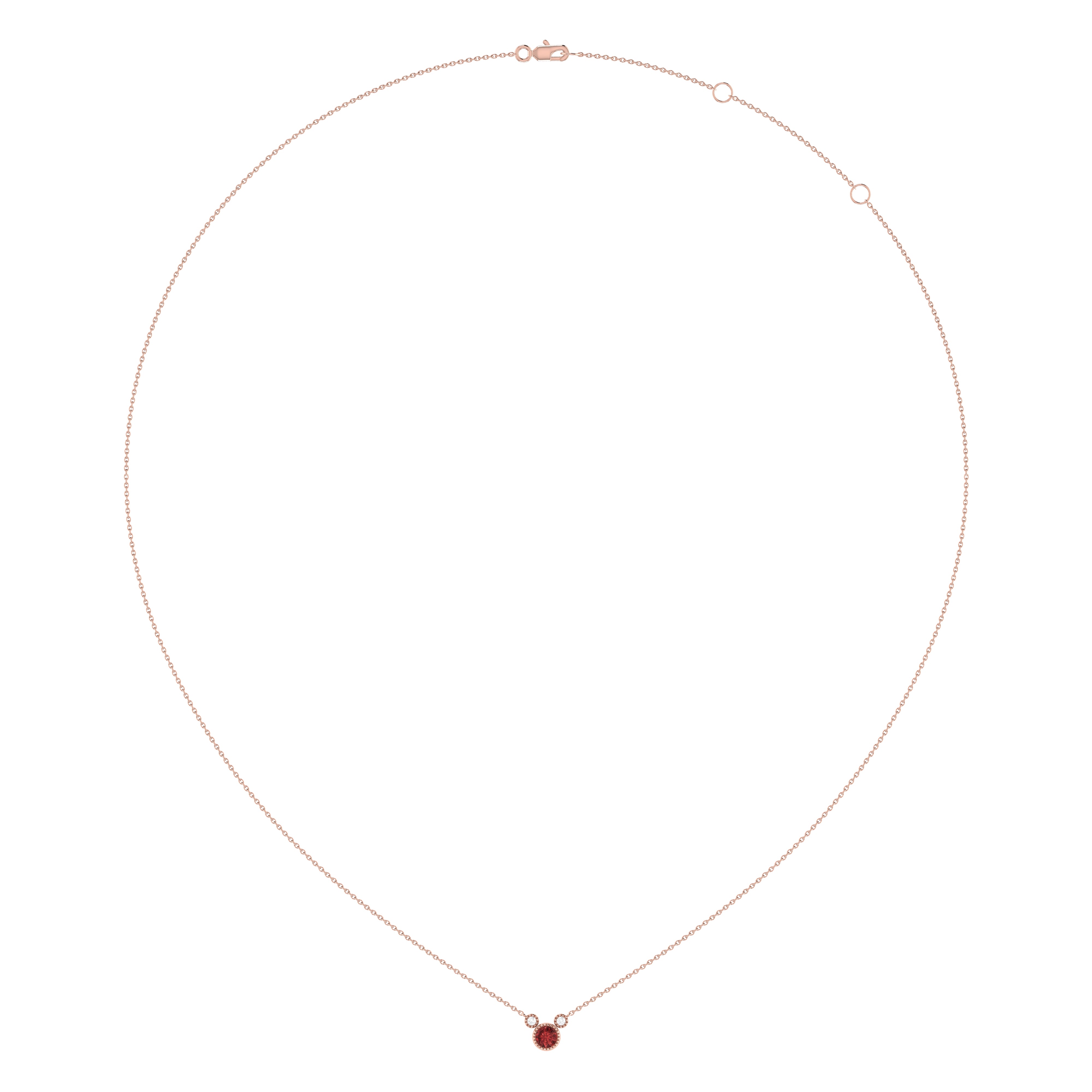 Crafted in 14K Rose Gold, this necklace features a round cut garnet gemstone (4 mm), along with 0.04 carats of genuine, natural diamonds in a bezel setting.