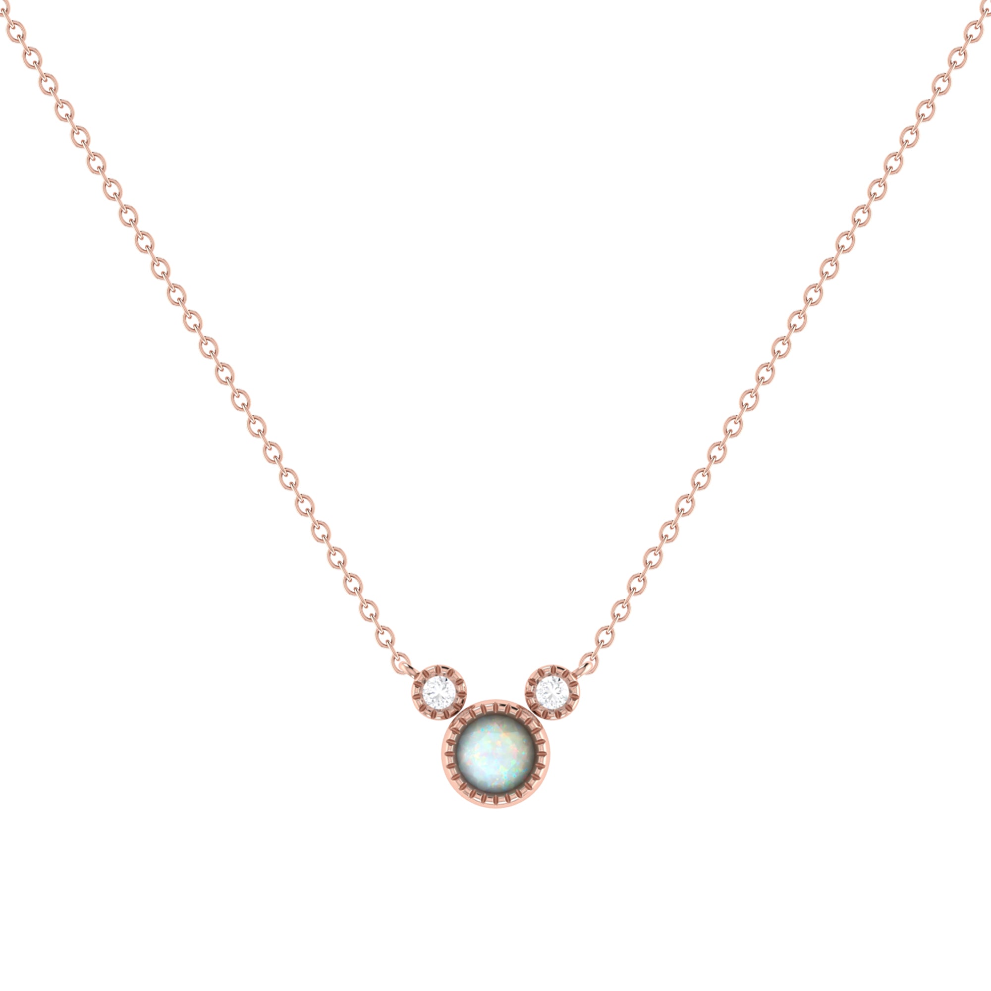 Round Cut Opal & Diamond Birthstone Necklace In 14K Rose Gold