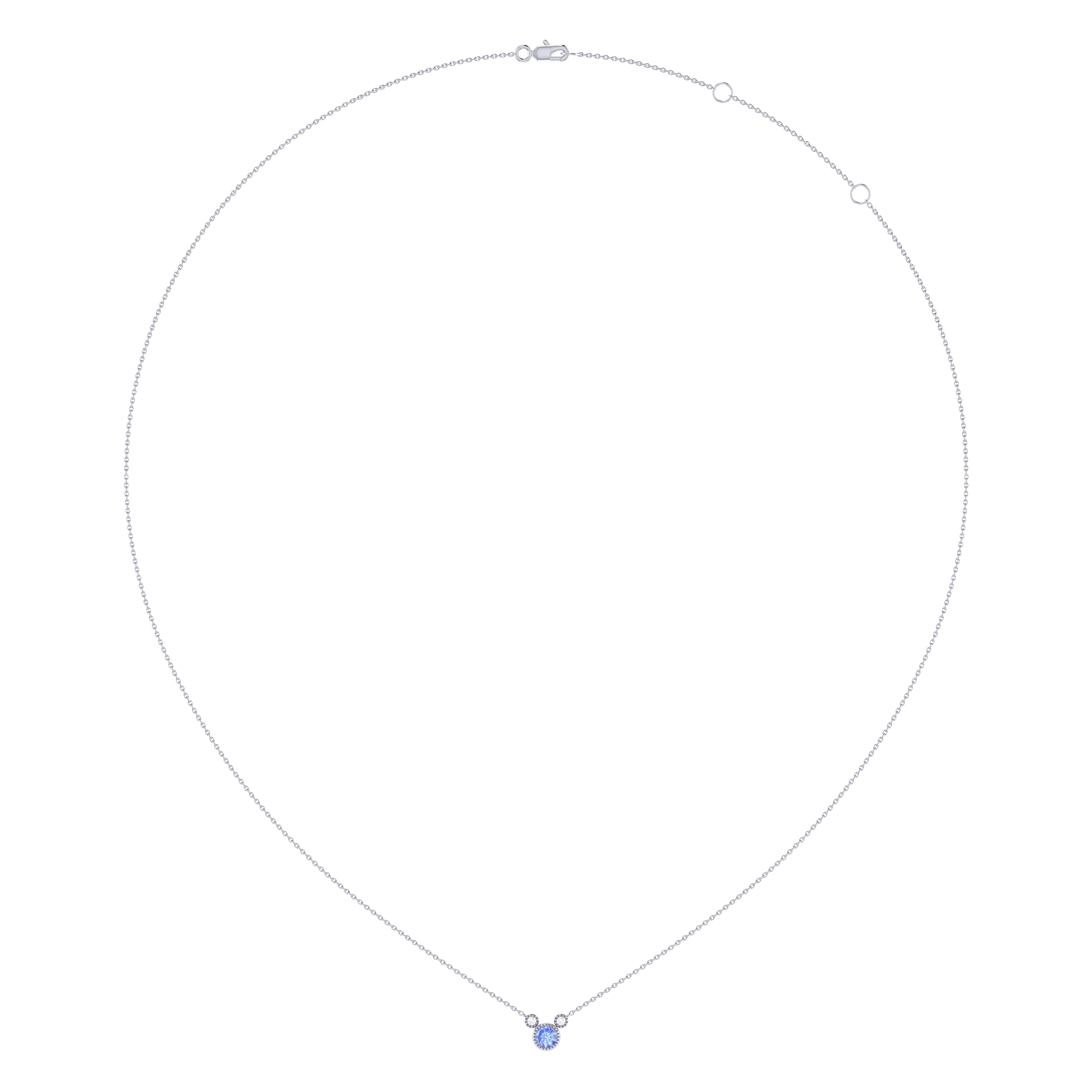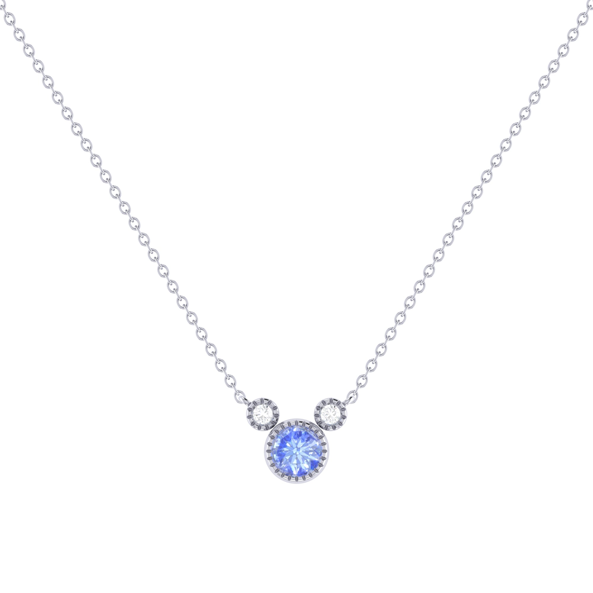 Round Cut Tanzanite & Diamond Birthstone Necklace In 14K White Gold