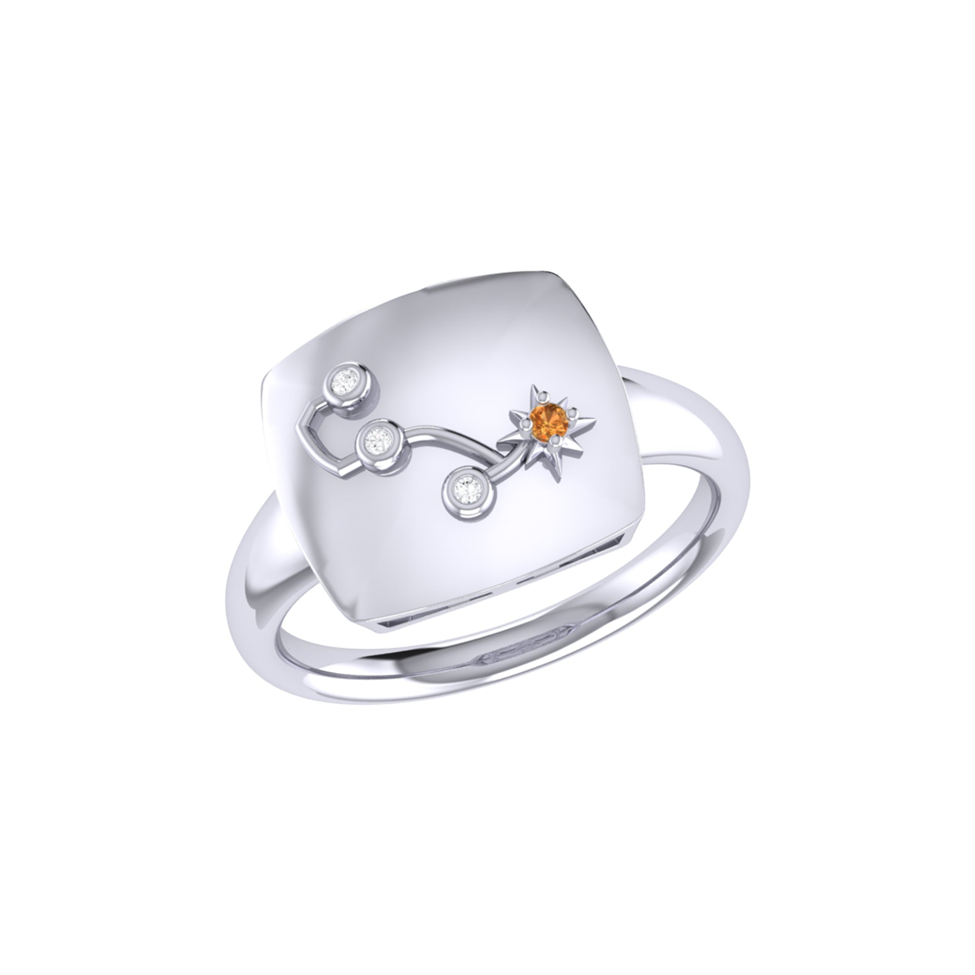 Scorpio Citrine & Diamond Constellation Signet Ring in Sterling Silver