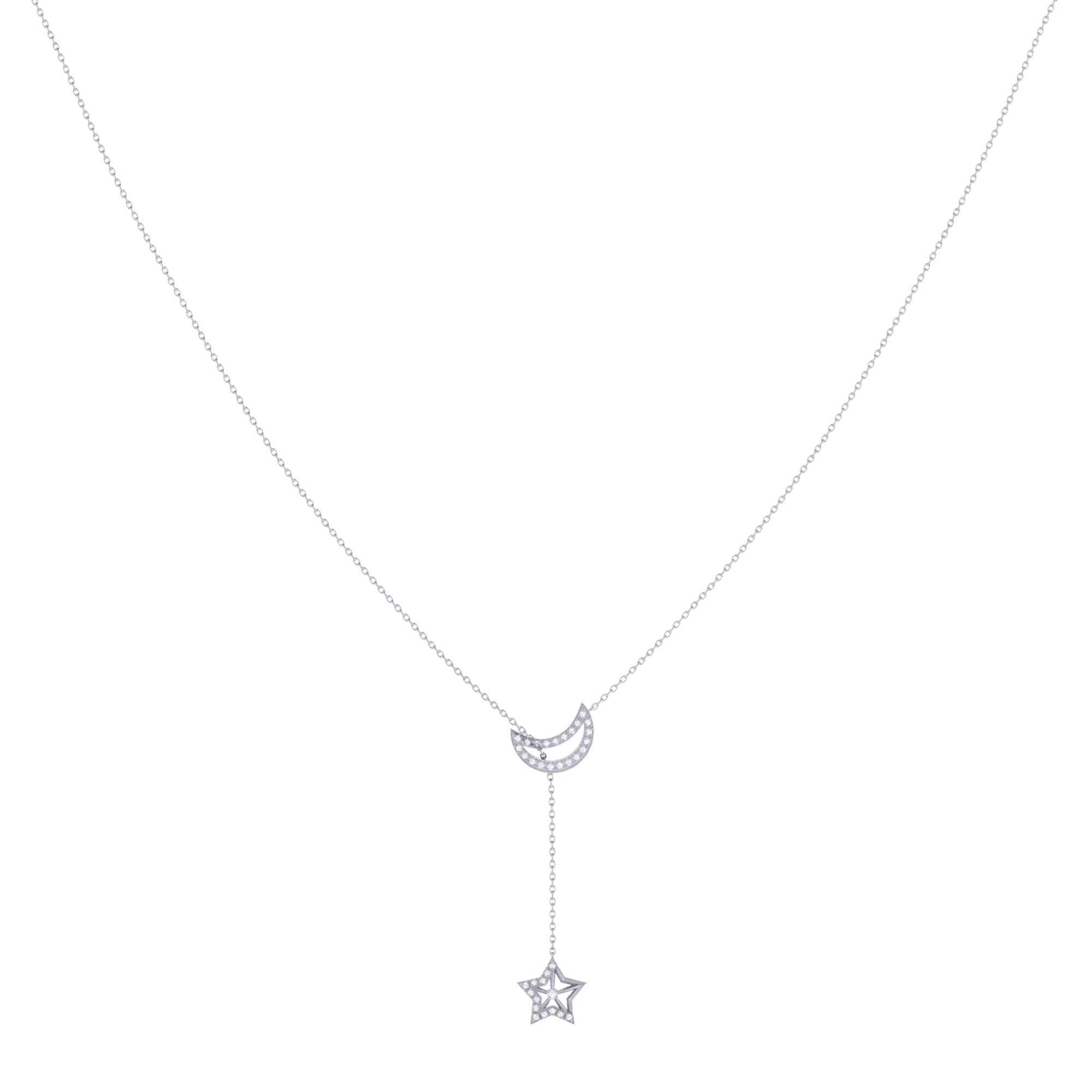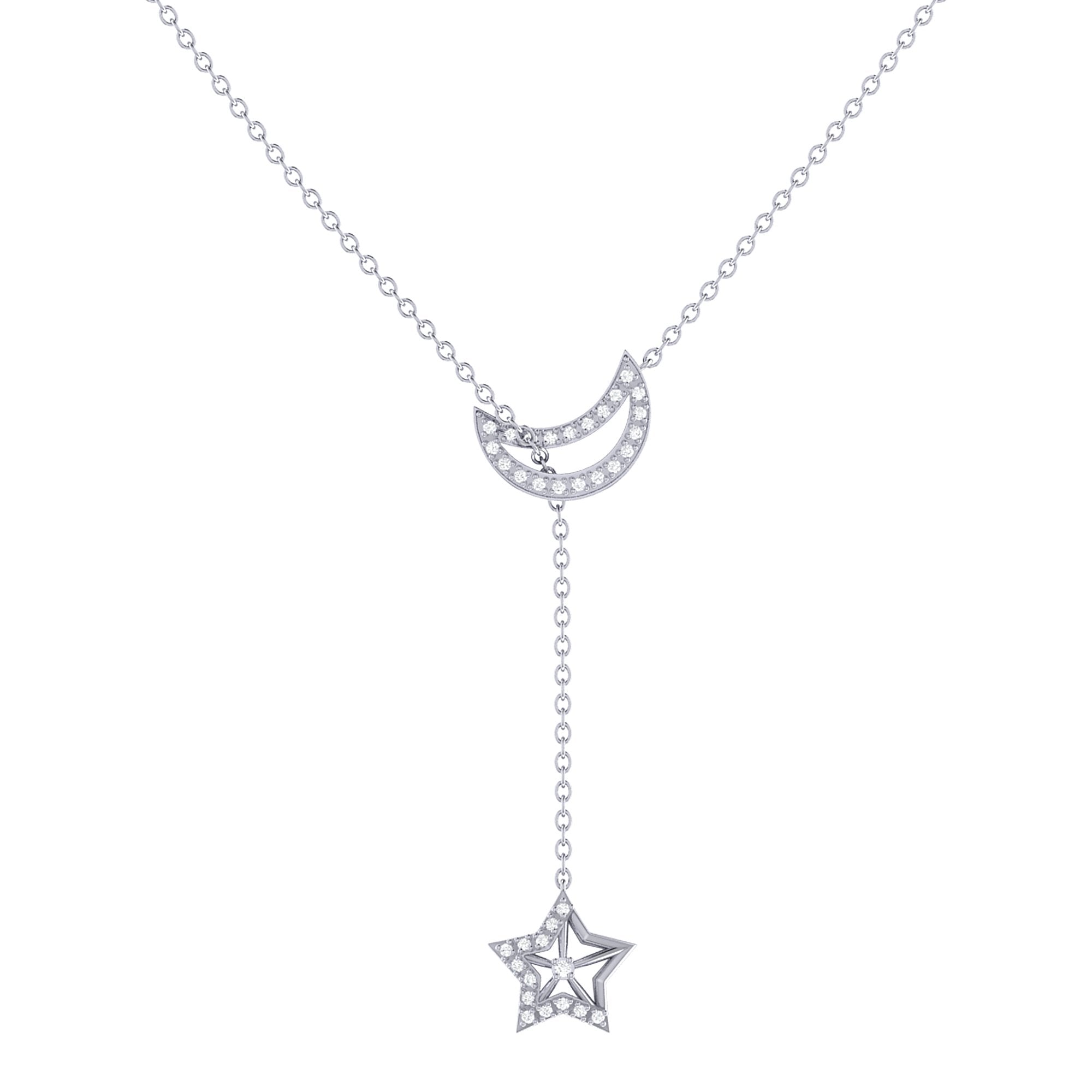 Shooting Star Moon Crescent Diamond Necklace in 14K White Gold