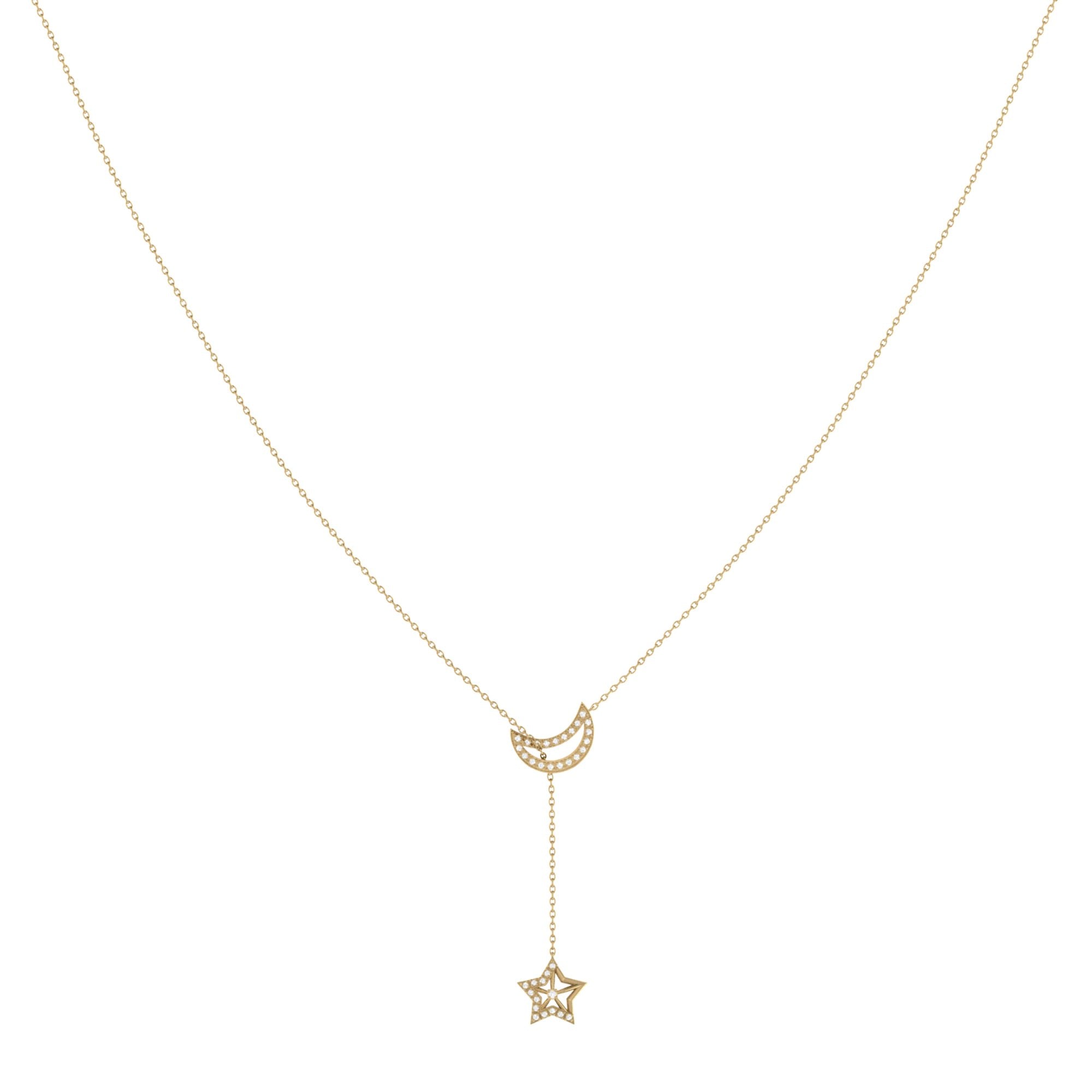 Shooting Star Moon Crescent Diamond Necklace in 14K Yellow Gold
