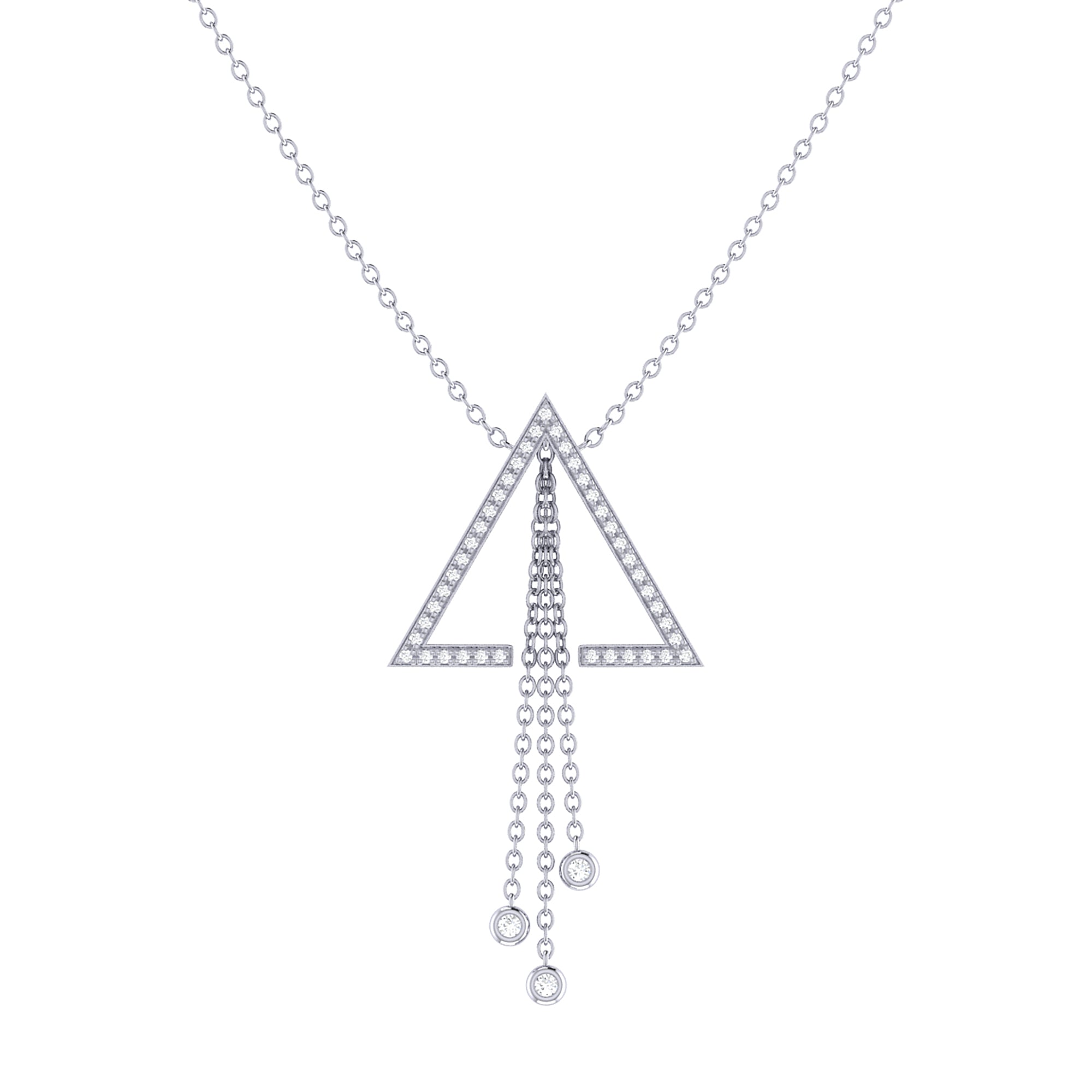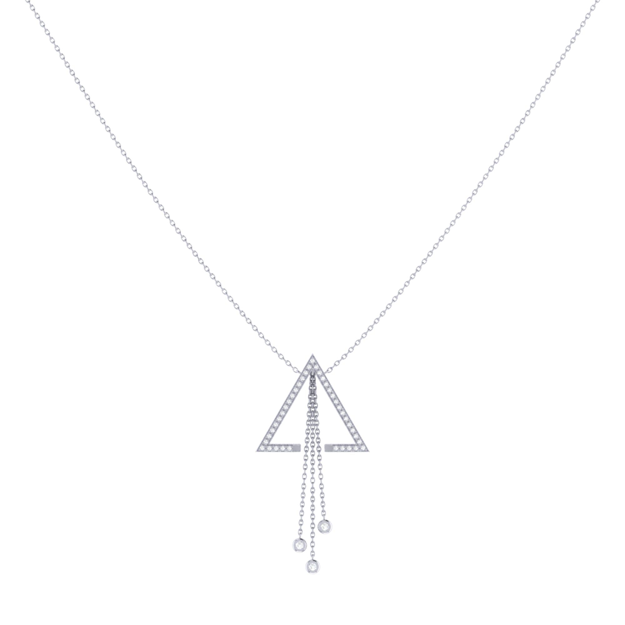 Celebrate the city skyline with sparkling diamonds in the Skyline Triangle Silver Diamond Lariat Necklace. Meticulously crafted for the woman who values geometric sophistication and lasting style.